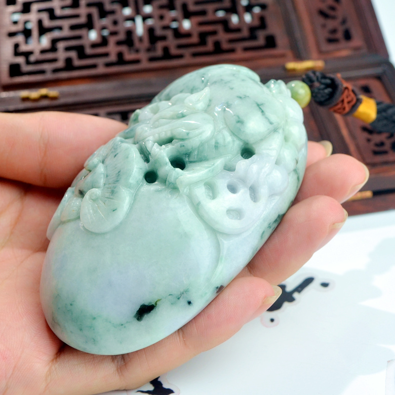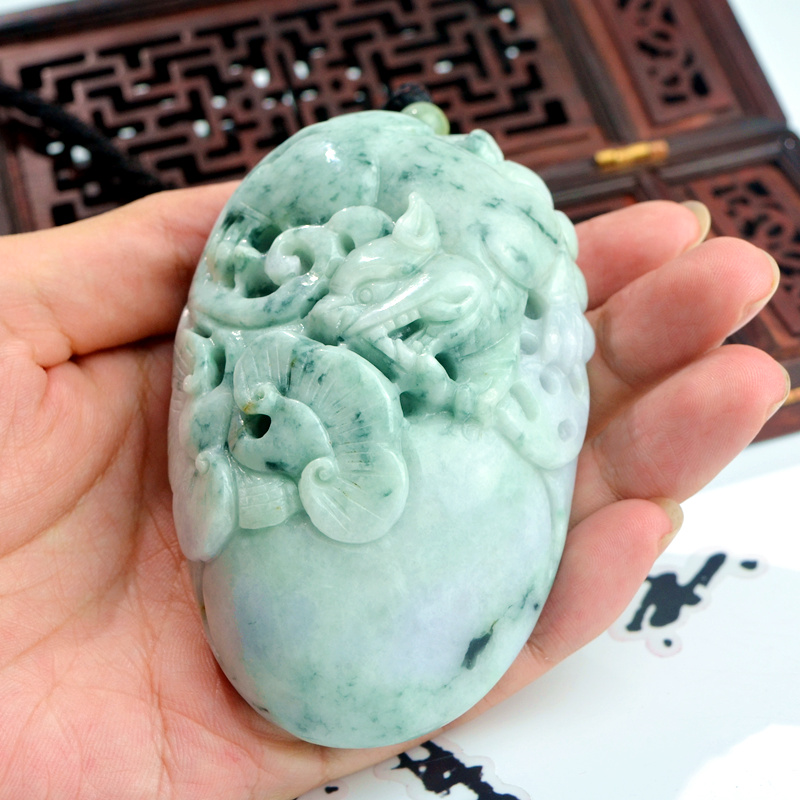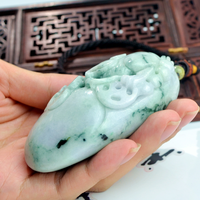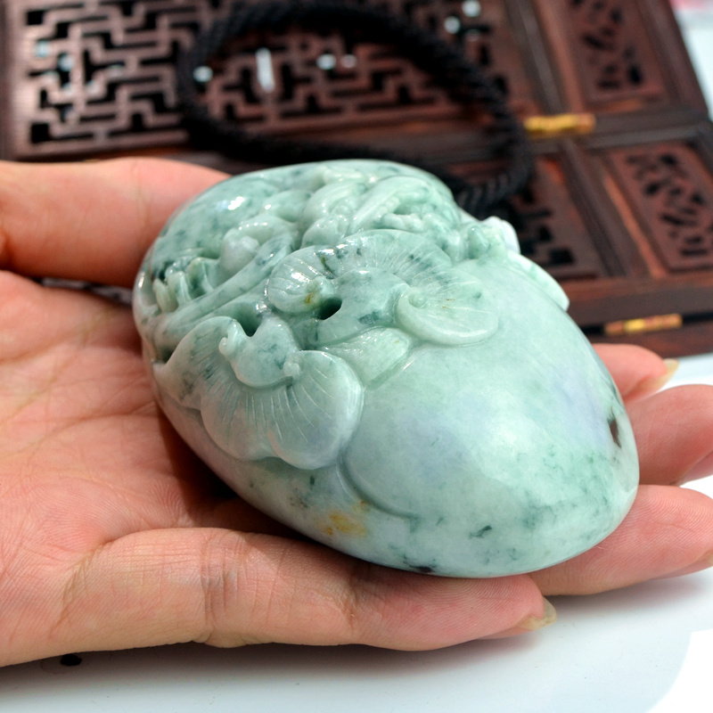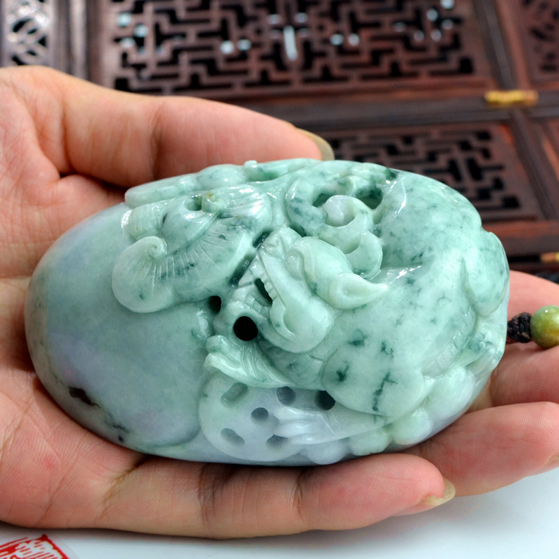 翡翠天然缅甸玉猛虎下山手把件冰糯种黄翡玉石如意手把玩老坑飘花
