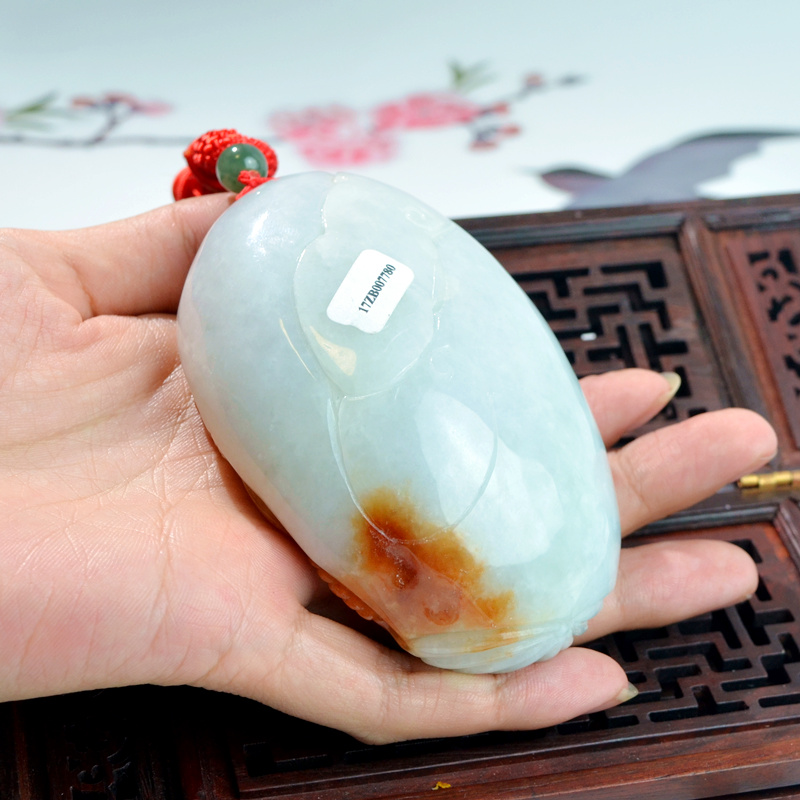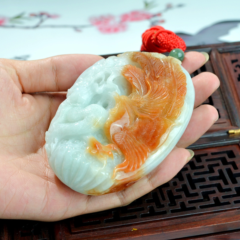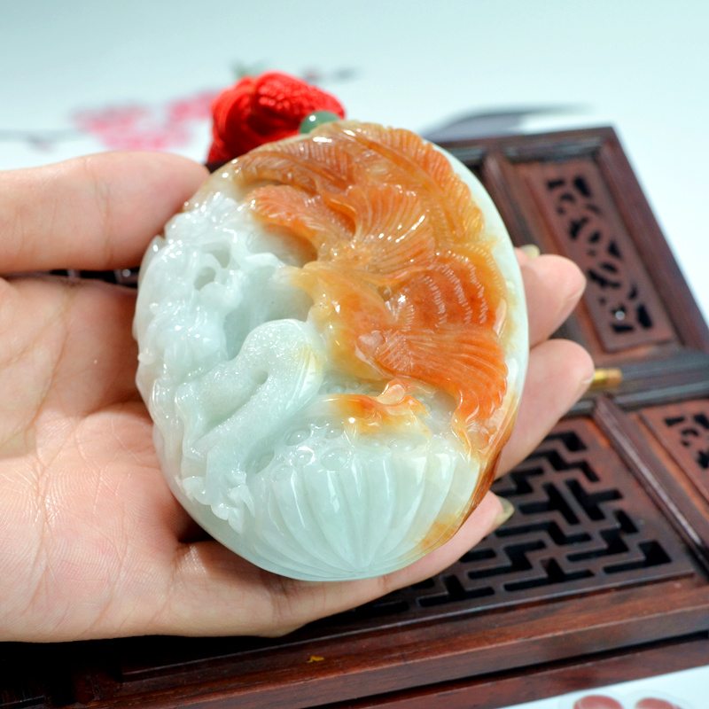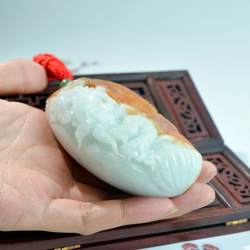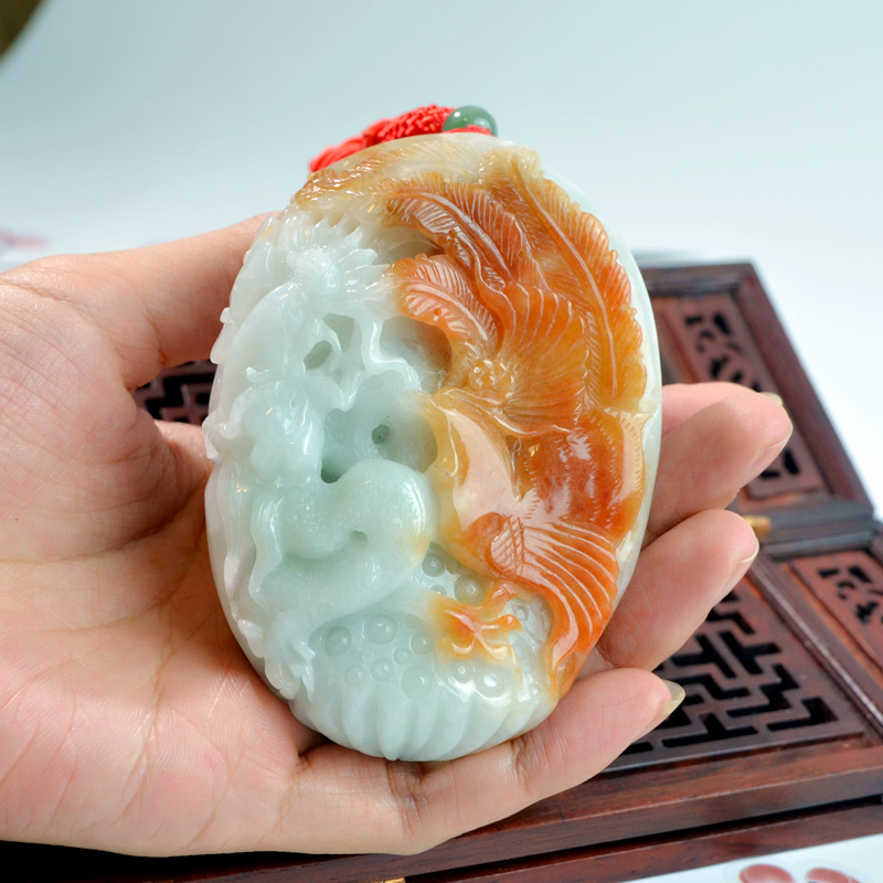 天然翡翠飘黄翡如意龙凤呈祥玉手玩件翡翠成双成对祥瑞吉祥把玩件