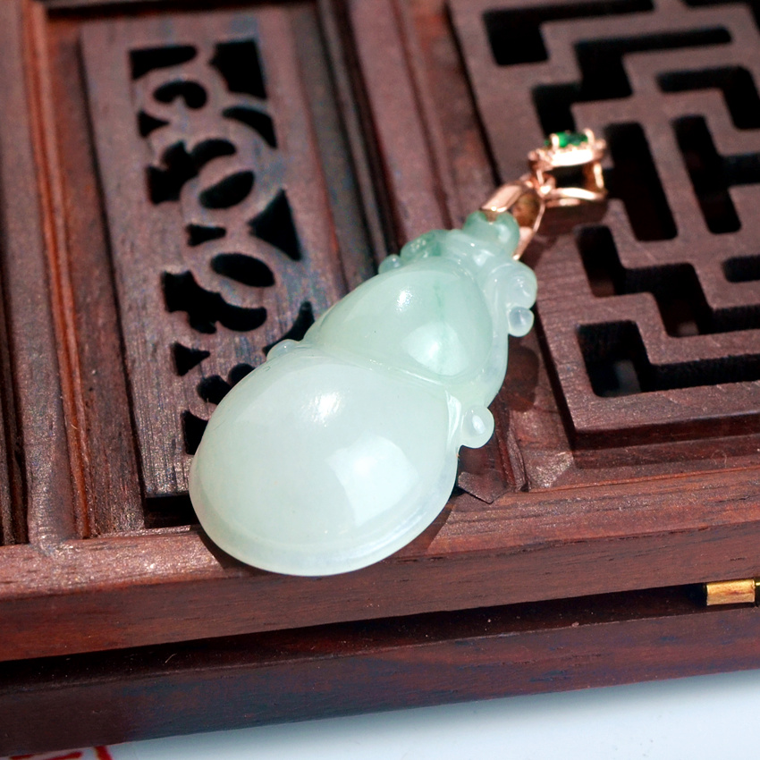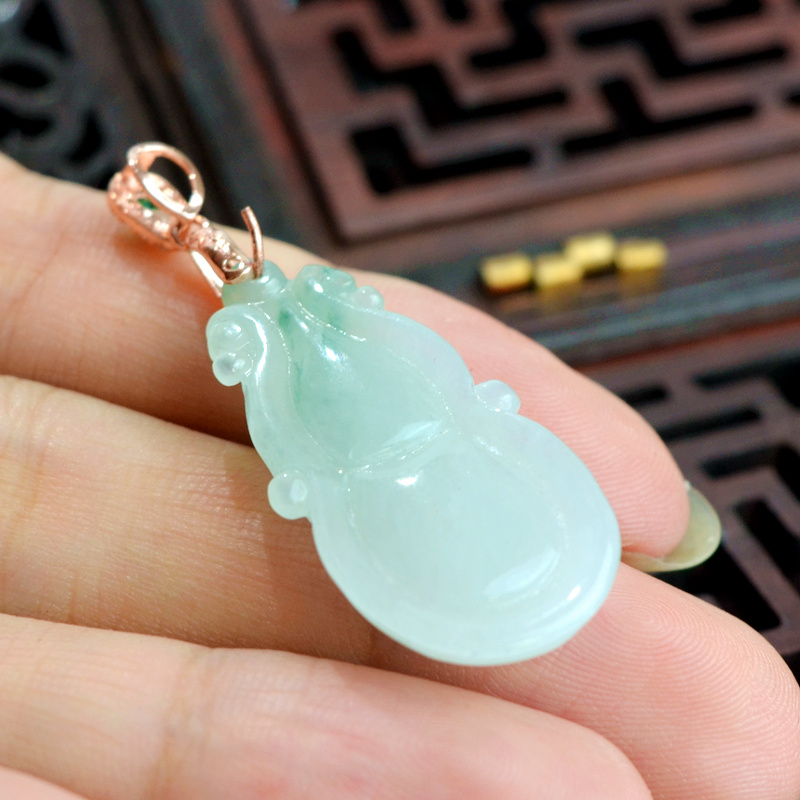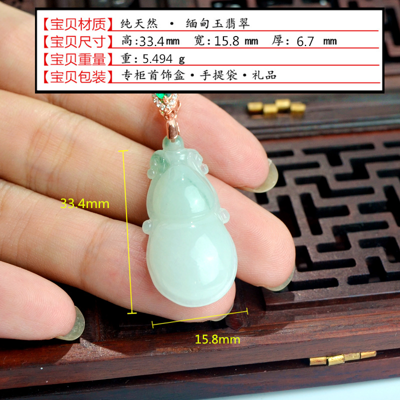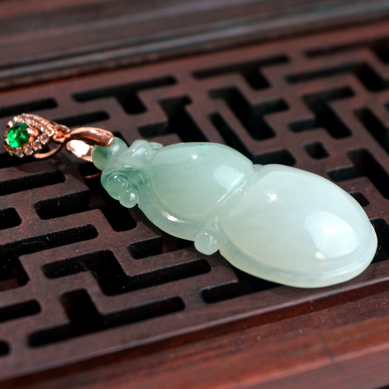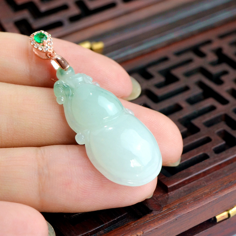 飘花天然A货翡翠葫芦吊坠女保平安缅甸玉925镶嵌玉葫芦项链挂件