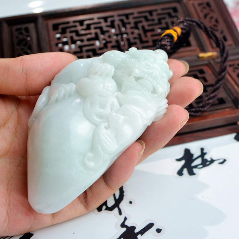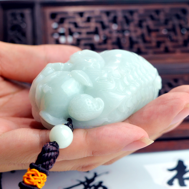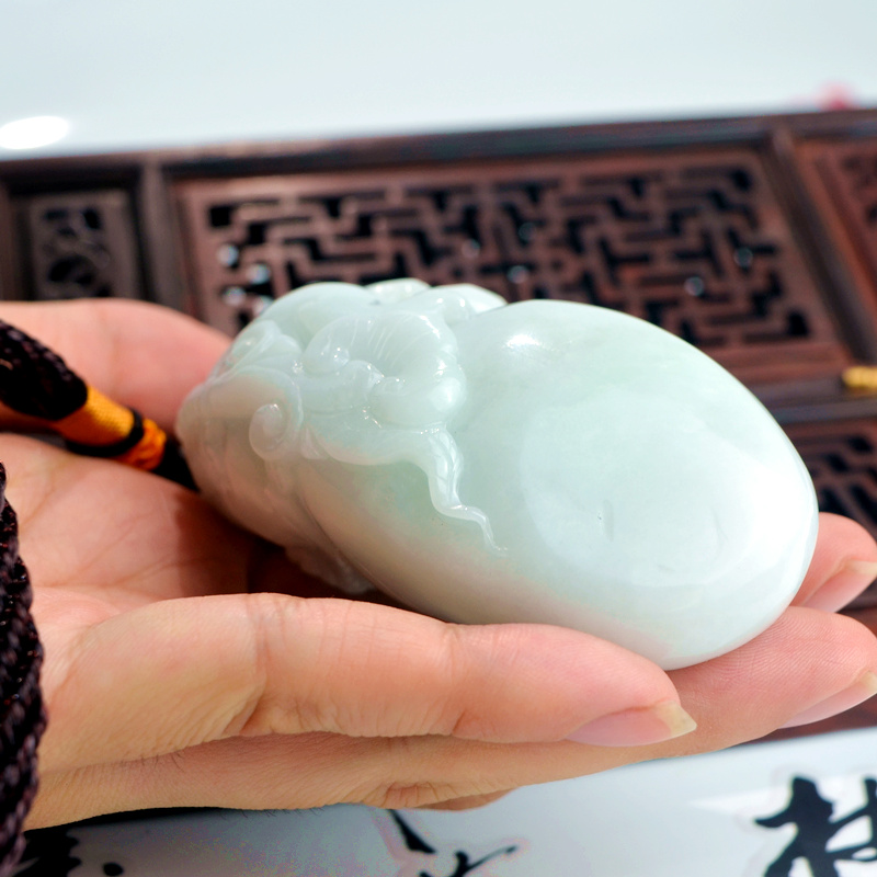 正品缅甸玉天然A货翡翠招财进宝手把件貔貅手玩件玉石貔貅把件