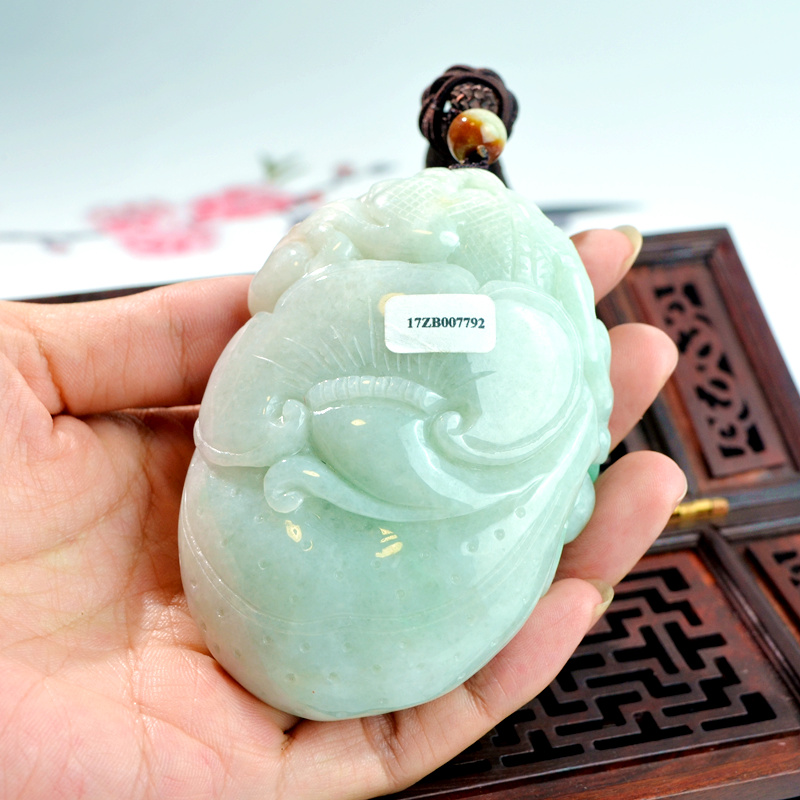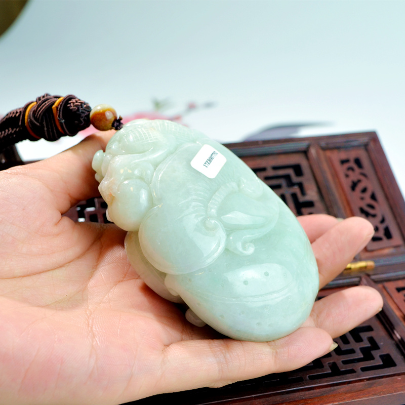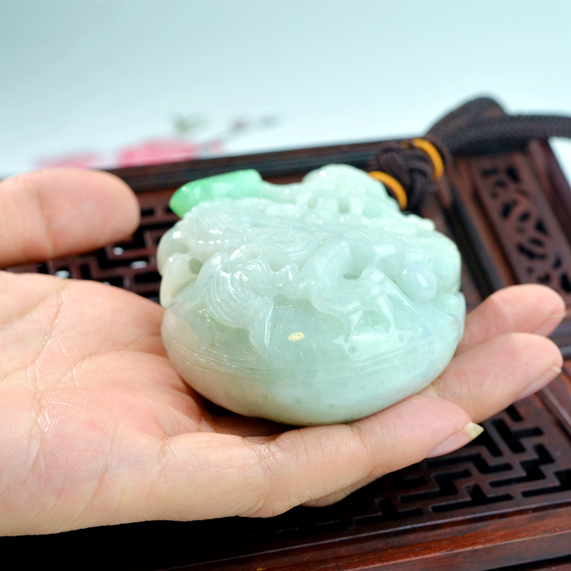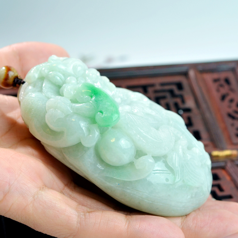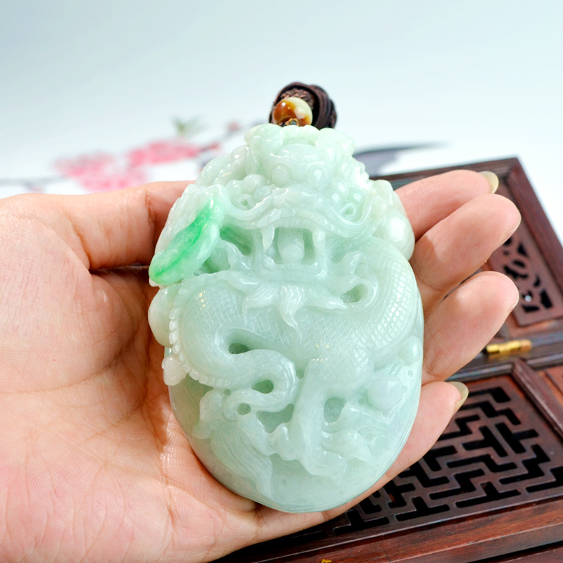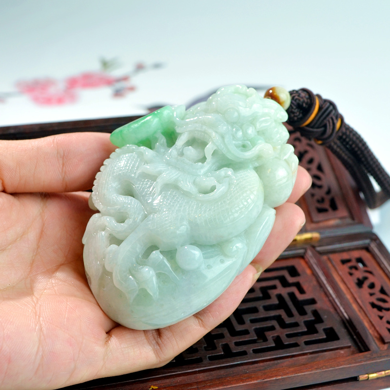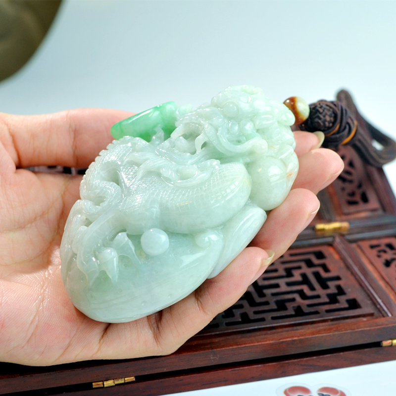 天然翡翠龙手把件a货缅甸玉龙把件生意兴隆手玩件玉石生肖带证书