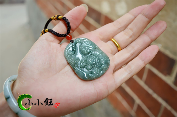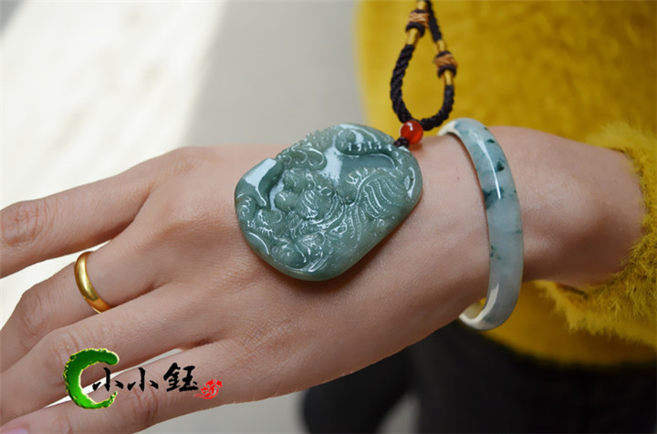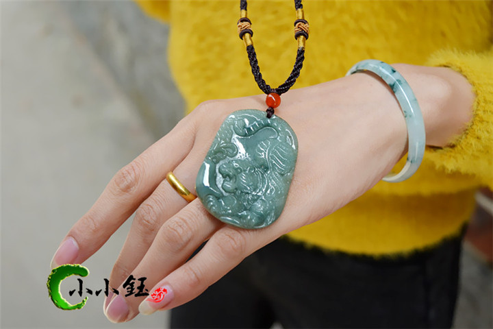 清秋翡翠 天然A货缅甸玉生肖虎吊坠玉虎挂坠 飘花翡翠虎挂件项链