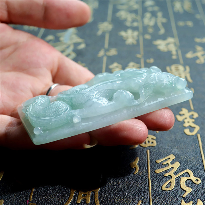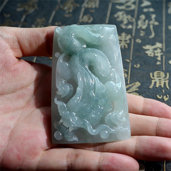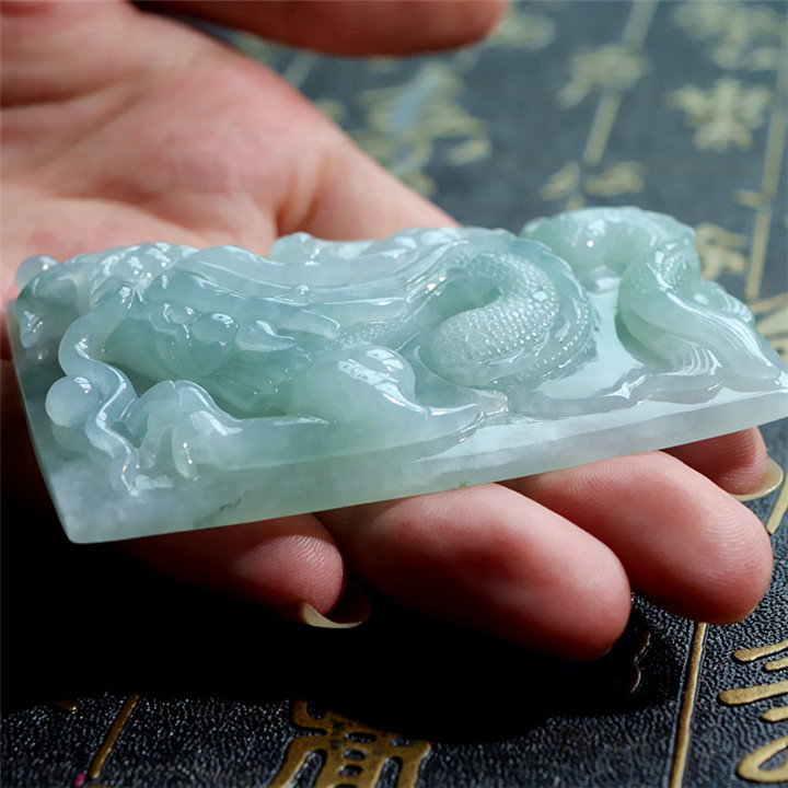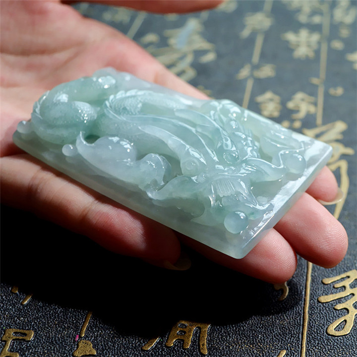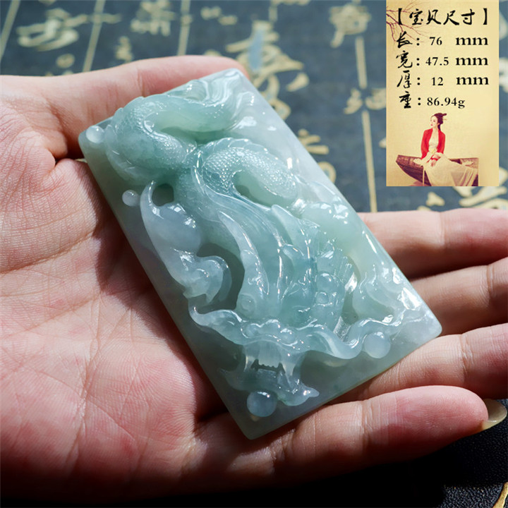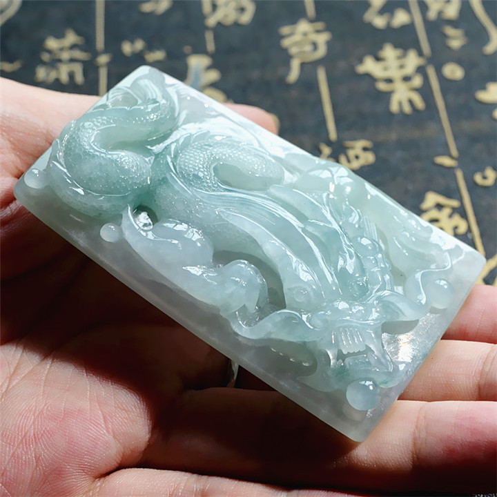 精工细雕a货翡翠龙吊坠缅甸玉龙挂件生肖龙挂坠龙牌飘花玉石男款