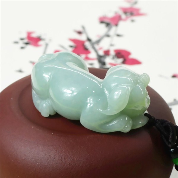 精工雕刻翡翠天然糯种猪生肖猪吊坠缅甸a货翡翠立体猪挂坠特价