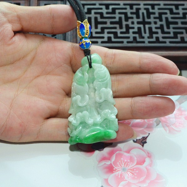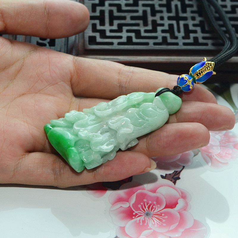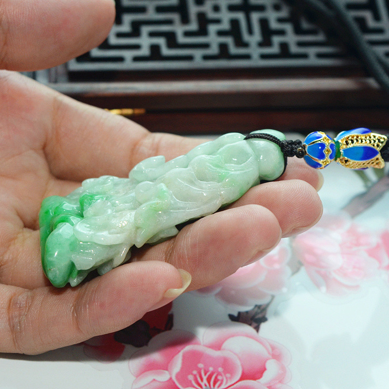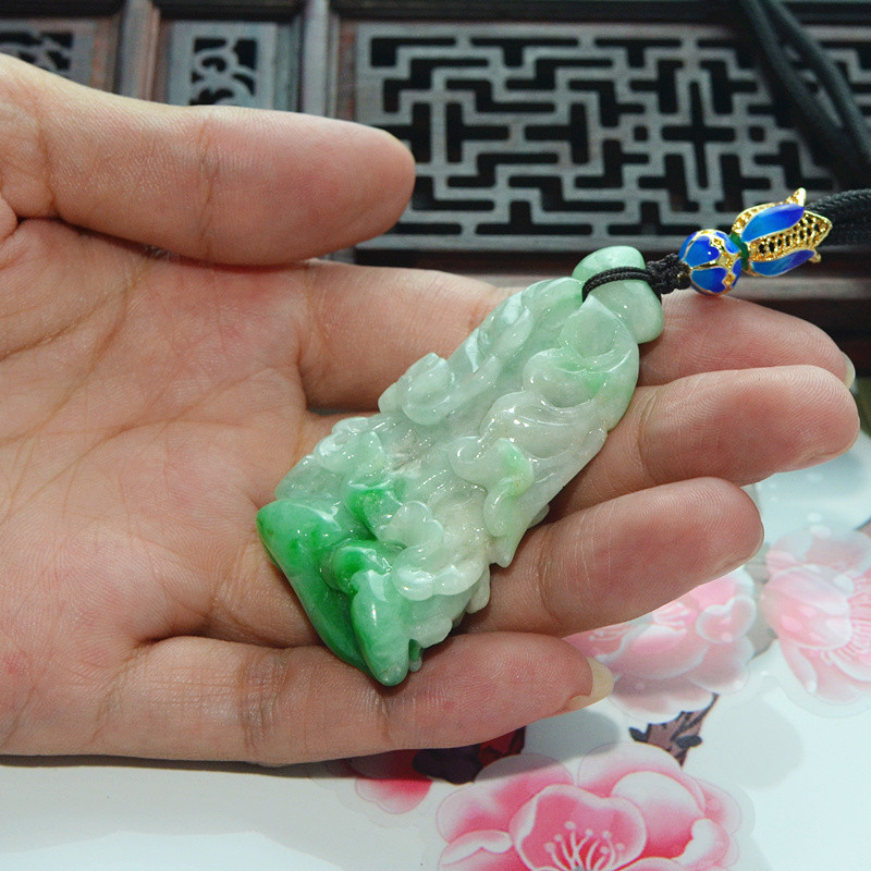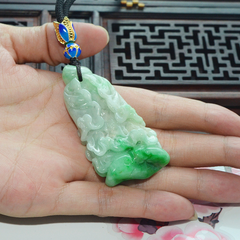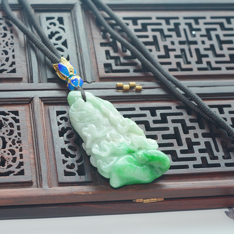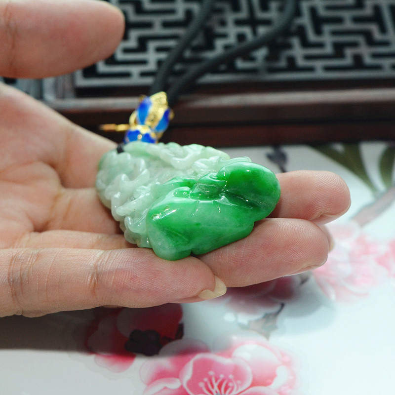 天然翡翠A货缅甸玉精雕飘绿招财白菜白菜聚来吊坠挂件男女款玉器