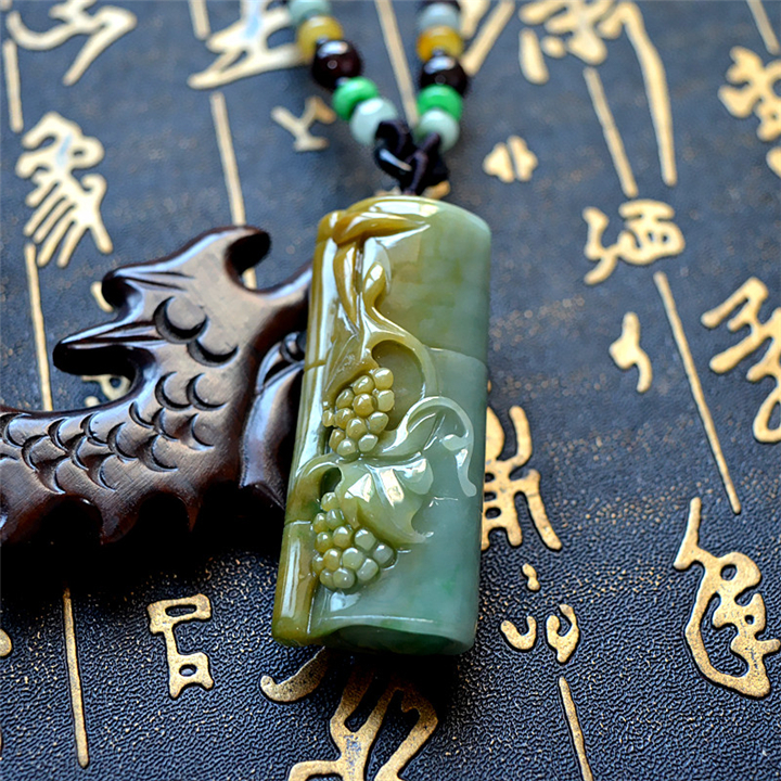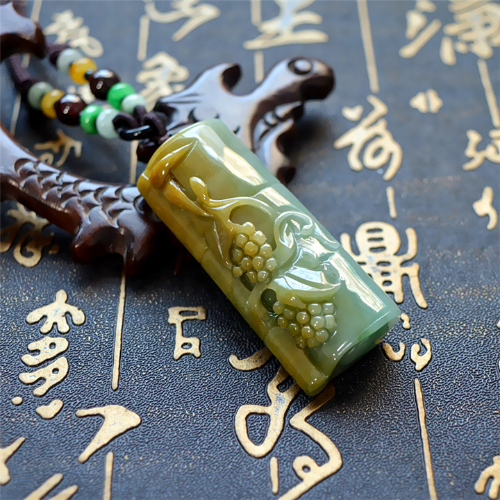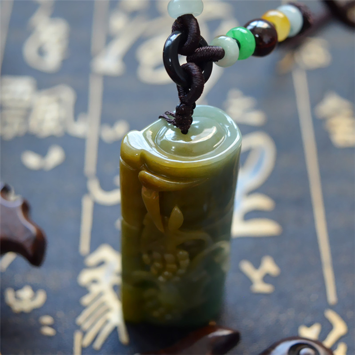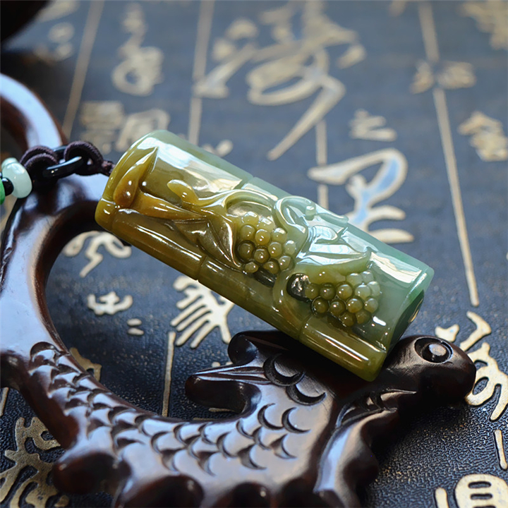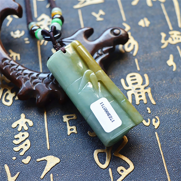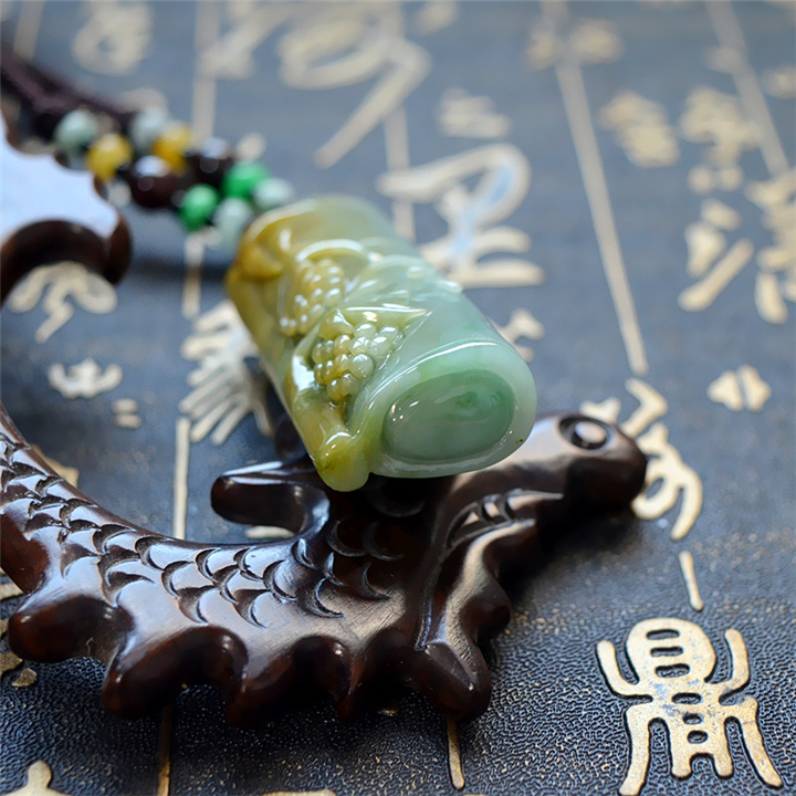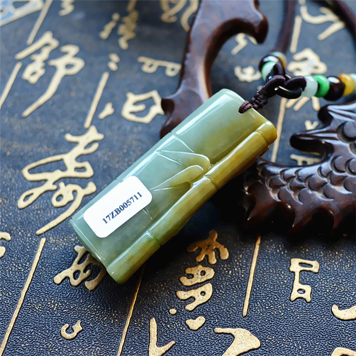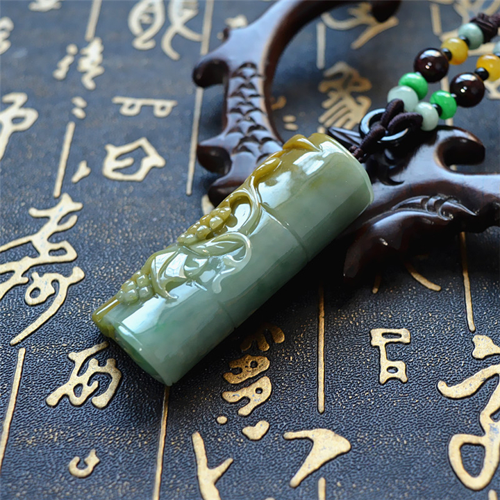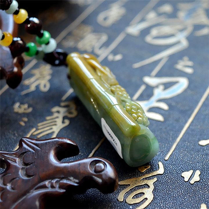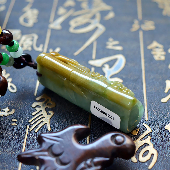 缅甸翡翠天然a货黄翡翠步步高升玉竹节吊坠 一步登天玉竹节挂件