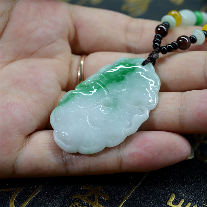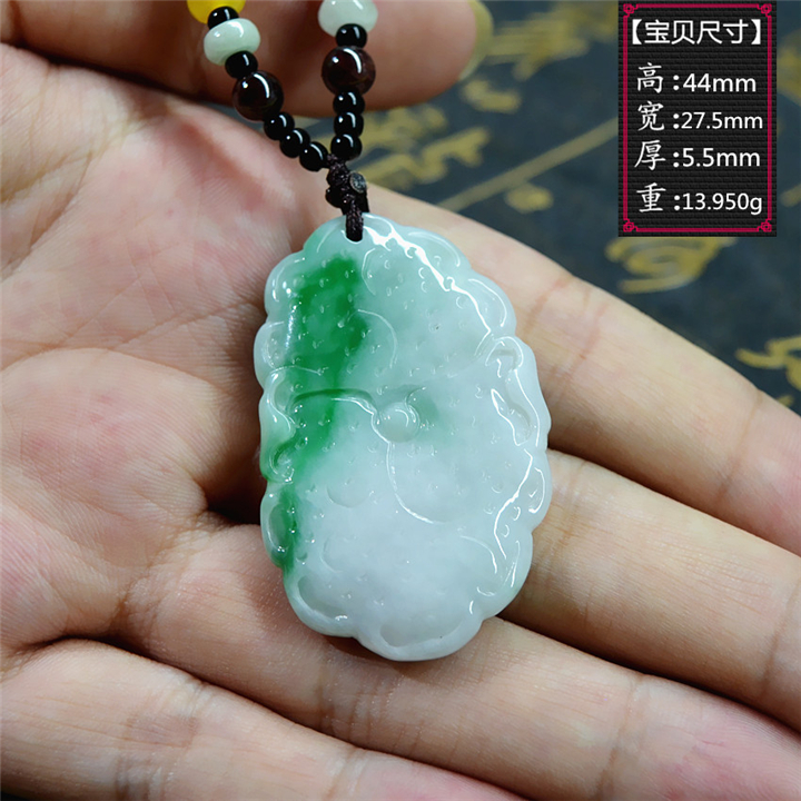 翡翠A货冰糯种飘阳绿出淤泥而不染荷花吊坠女款挂件玉佩情人礼物