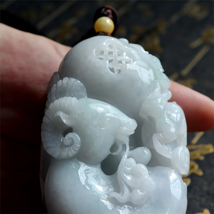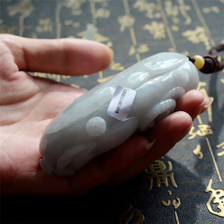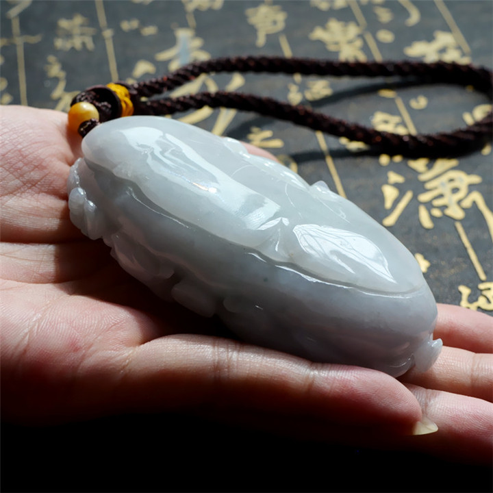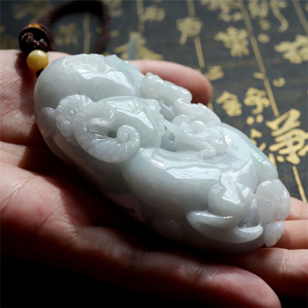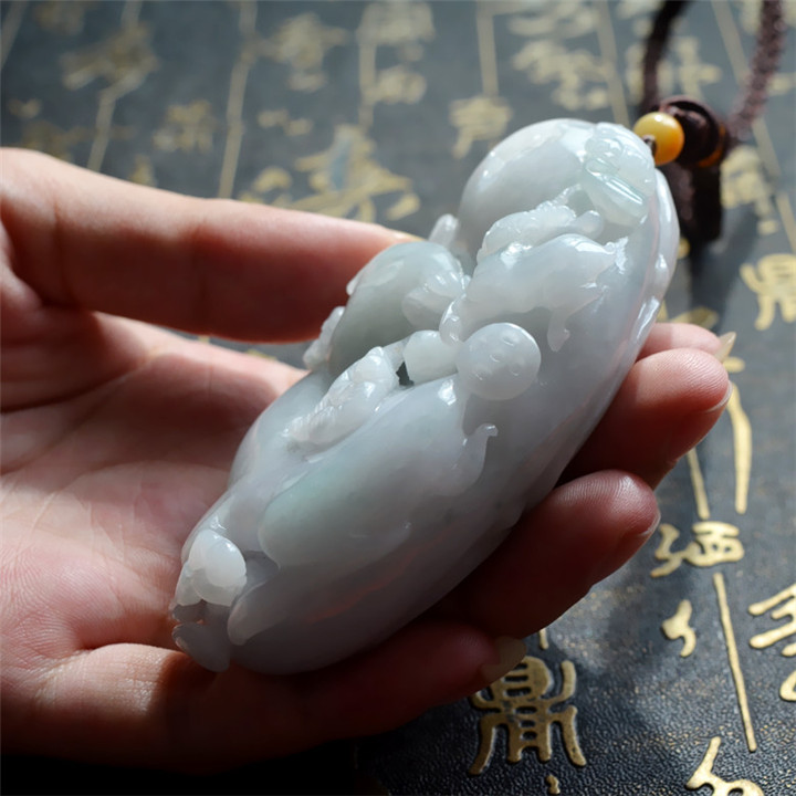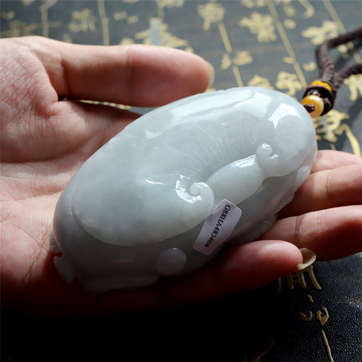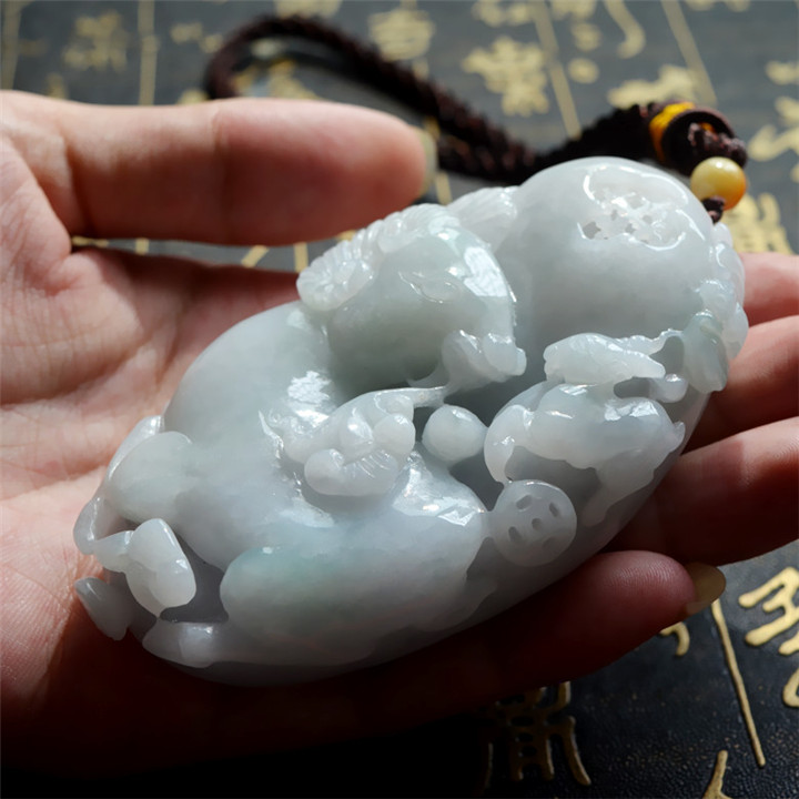 精雕天然翡翠洋洋得意如意手把件蝙蝠人参幸福美双面雕刻手玩件