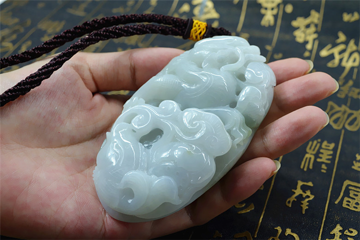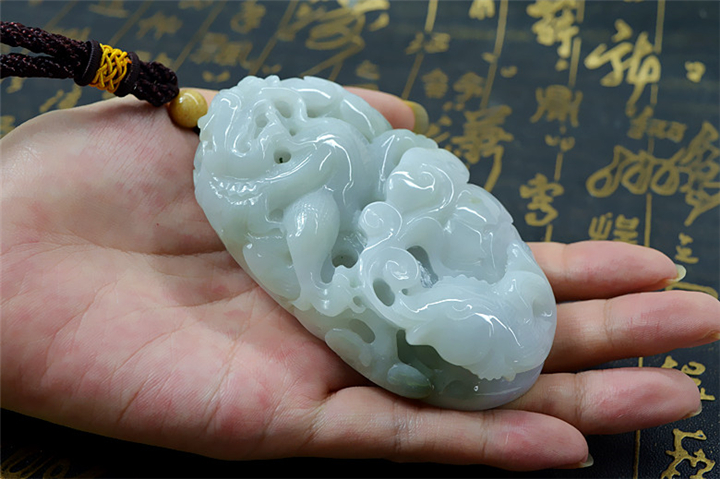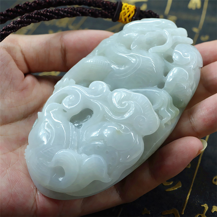 正品A货翡翠玉龙手把件 生意兴隆 年年有余美满如意手玩件带证书