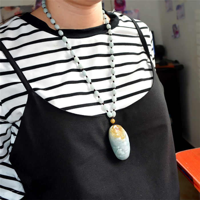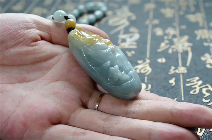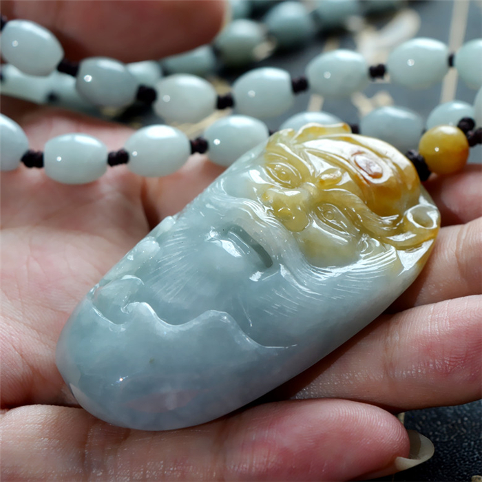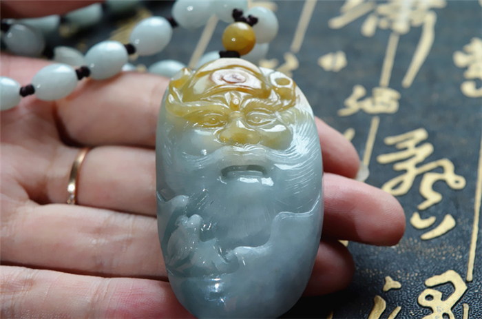 玉领翠 天然A货翡翠吊坠黄翡飘花雕刻人物钟馗头像挂件玉牌带证书