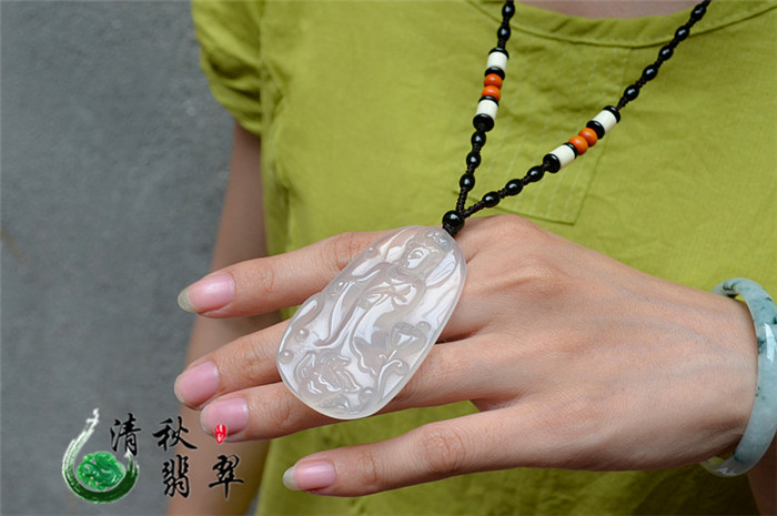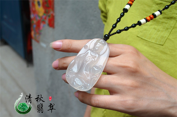 玉观音吊坠男款项链天然玉髓挂件开光玉菩萨玉佩玉坠正品冰种