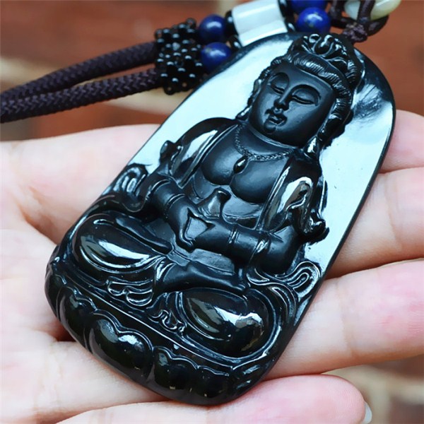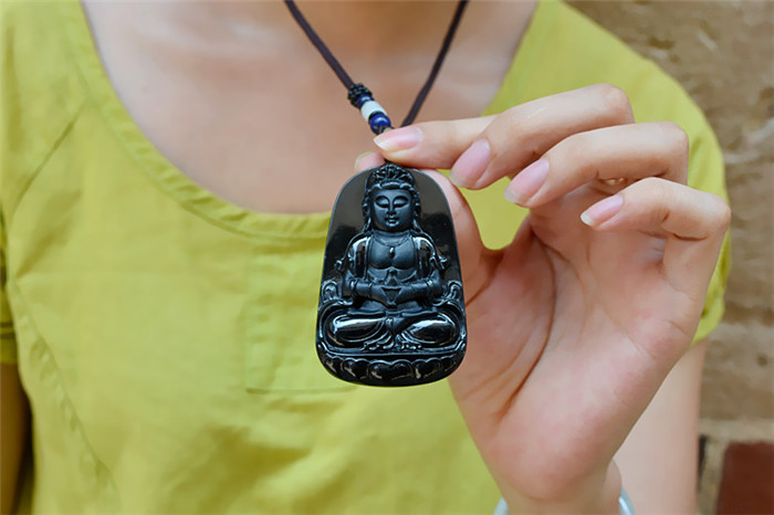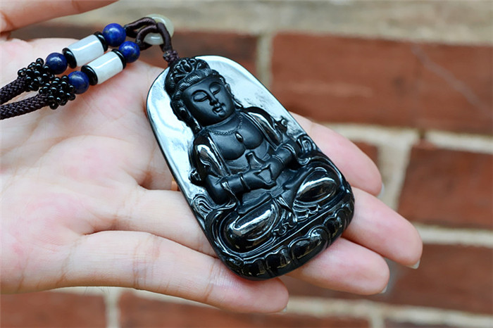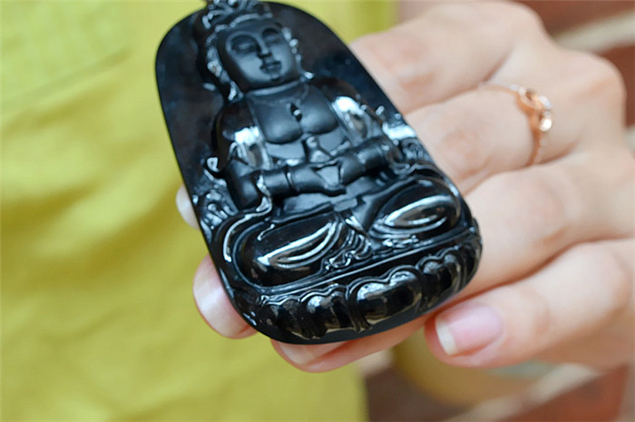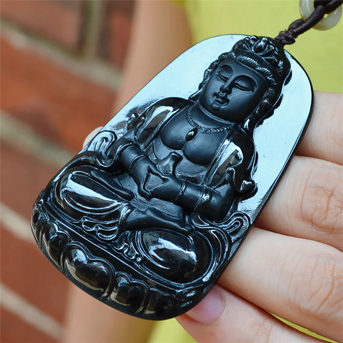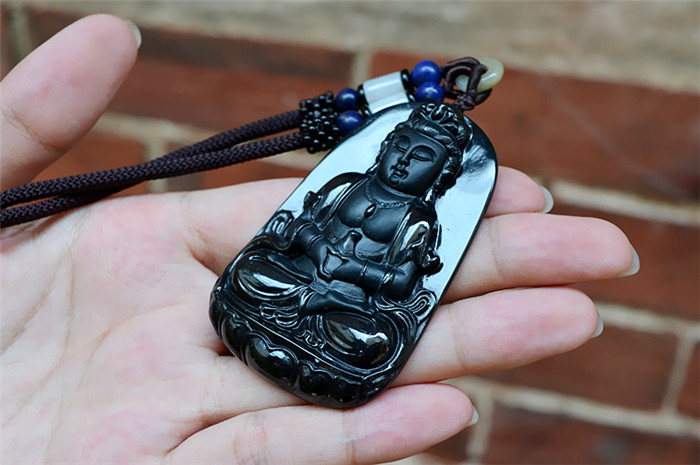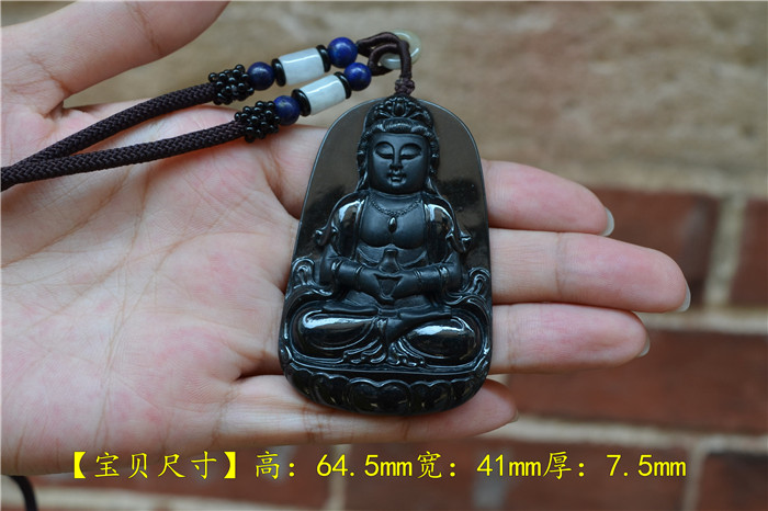 墨翠观音吊坠 天然缅甸翡翠A货 墨玉大势观音男款挂件 玉观音项链