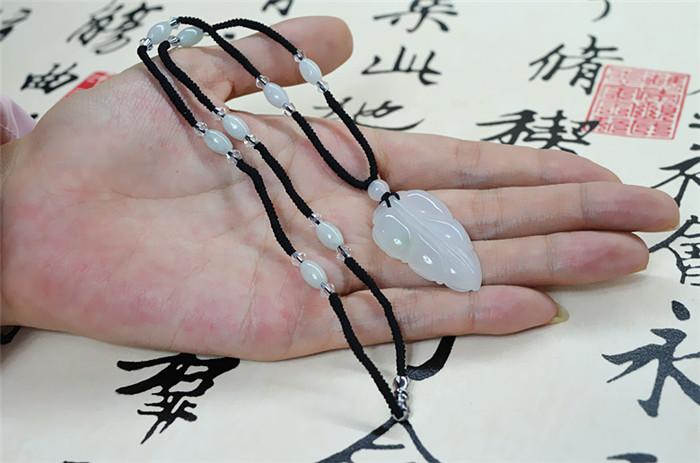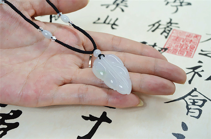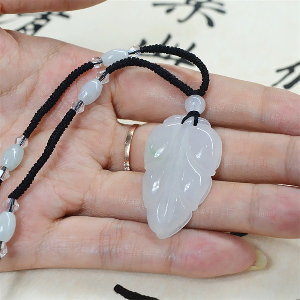 翡翠吊坠冰糯种a货翡翠树叶吊坠金枝玉叶事业有成玉挂件项链男