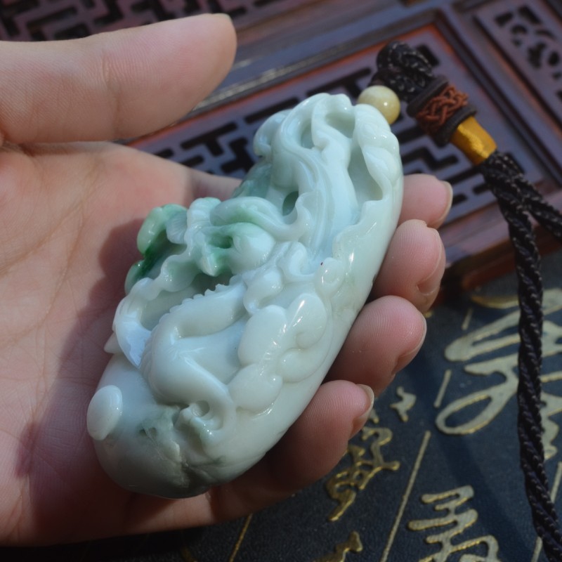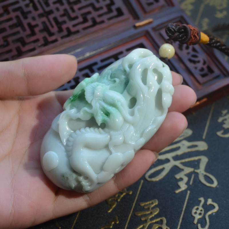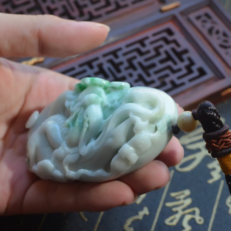 翡翠龙手把件小摆件天然缅甸玉石龙手玩件生意兴隆小摆件手玩把件