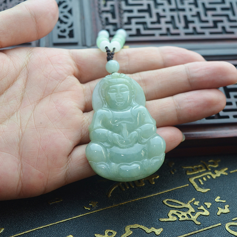正品天然A货翡翠大观音吊坠开光玉石项链挂件男士大款玉坠佩证书