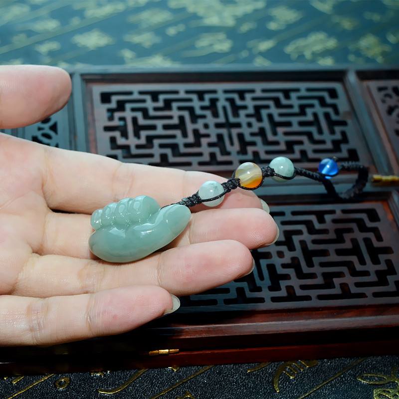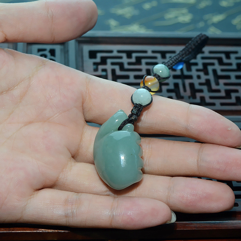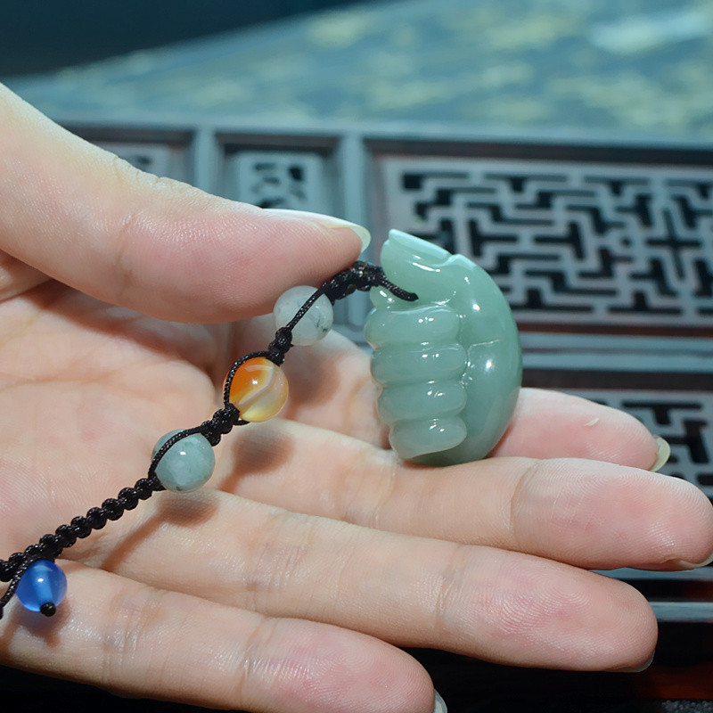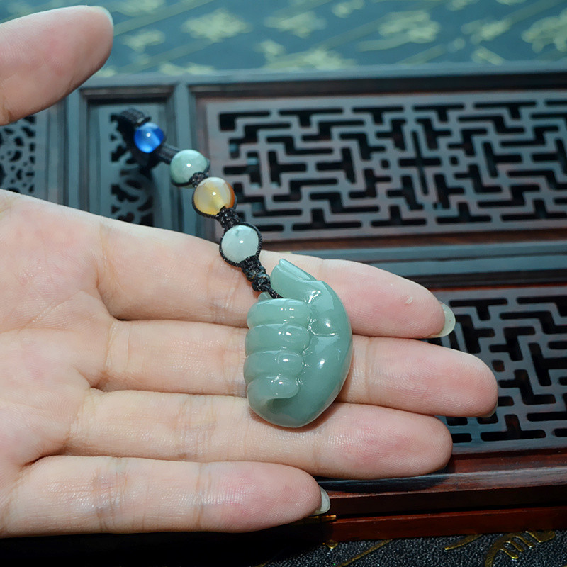 正品a货天然翡翠俏雕可爱点赞成功吊坠玉坠车钥匙挂件 带证书