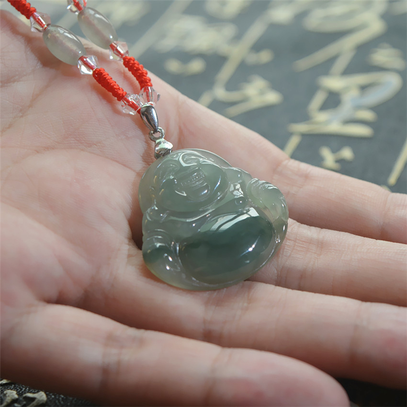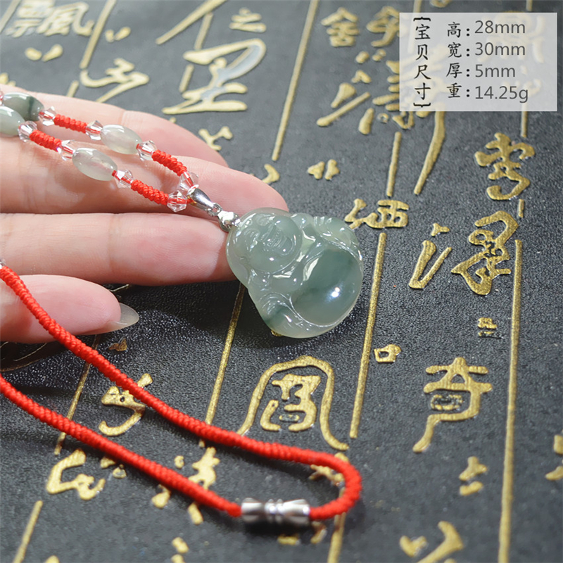 天然冰透翡翠玉佛项链吊坠女款挂件玉佩送老婆女朋友生日礼物