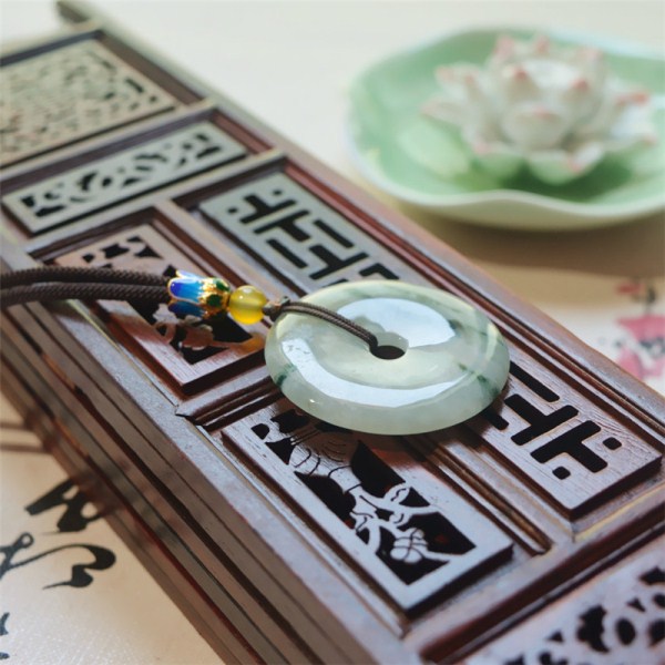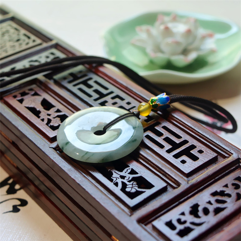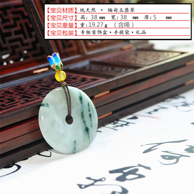 天然缅甸翡翠A货平安扣冰糯种飘花吊坠小玉石女款锁骨项链玉坠