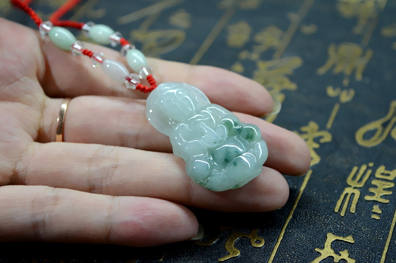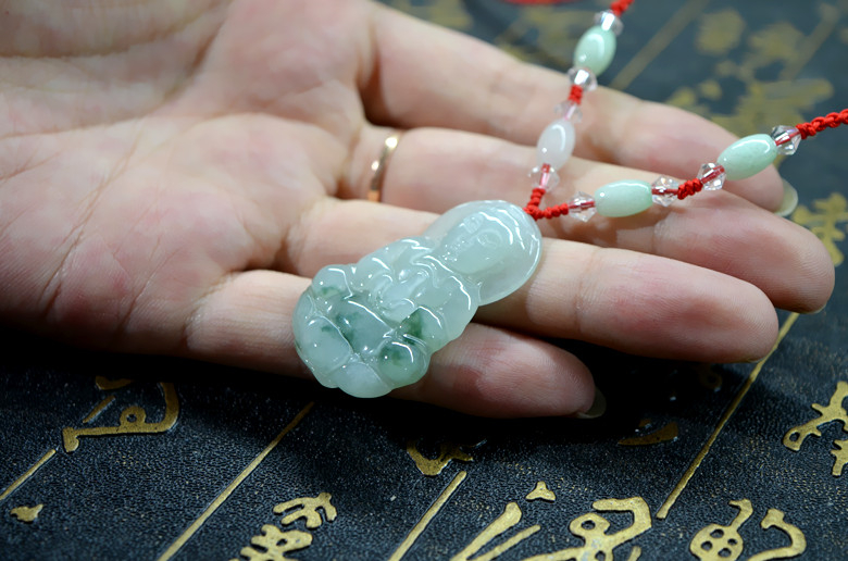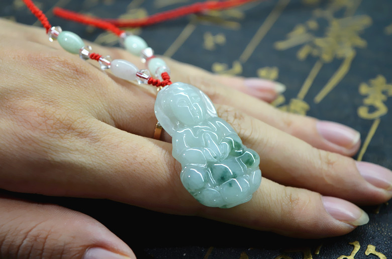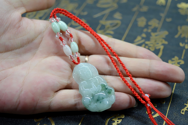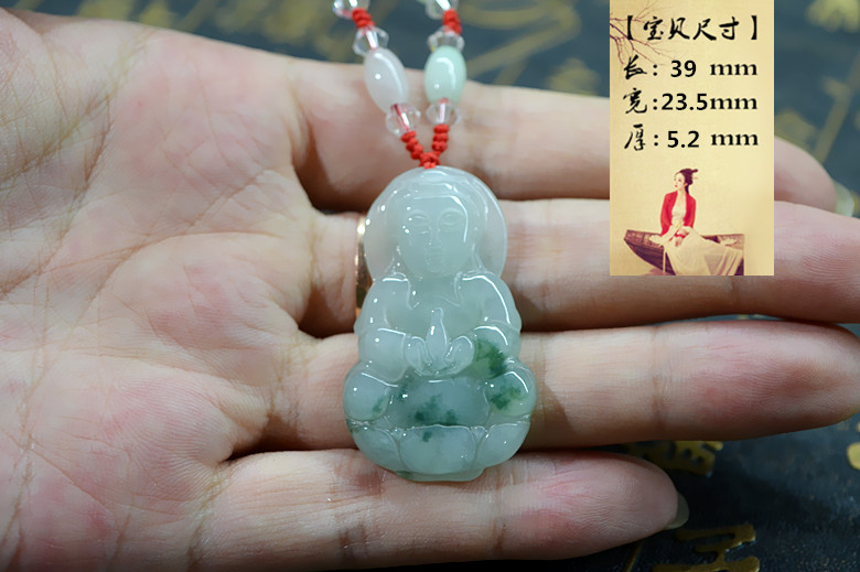 正品缅甸A货翡翠玉观音吊坠 男款飘花玉观音吊坠男士玉吊坠开光