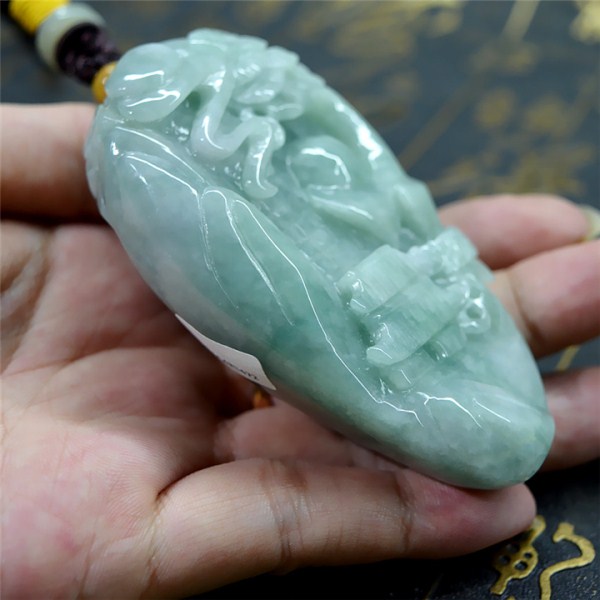 正品包邮天然A货翡翠锦绣前程山水手把件带证书 送领导礼物