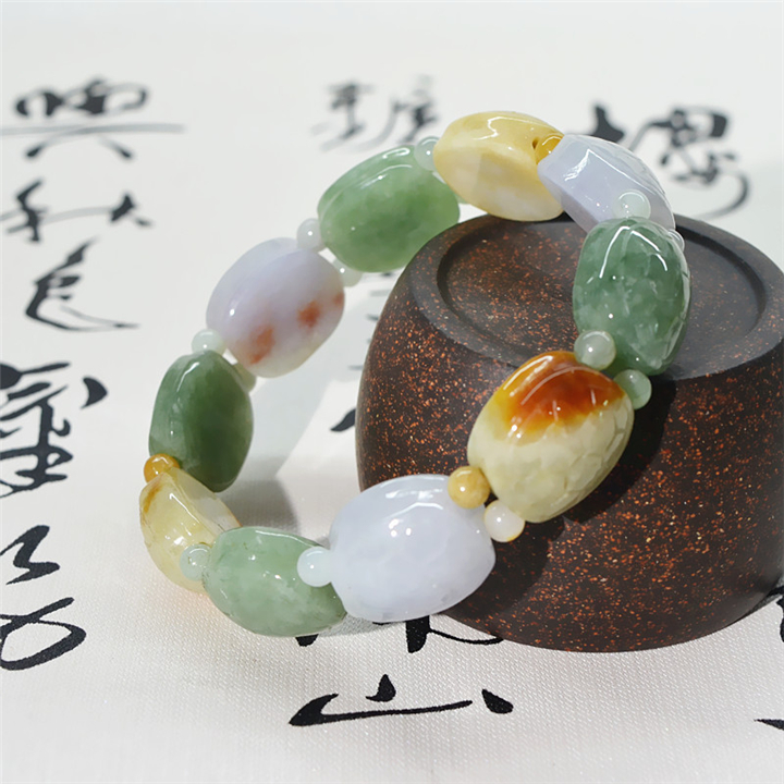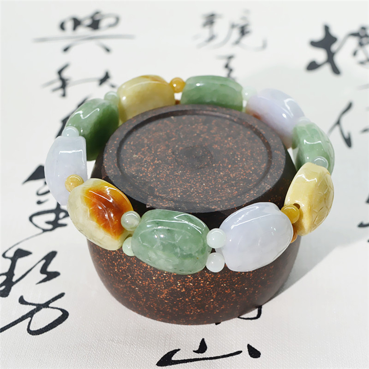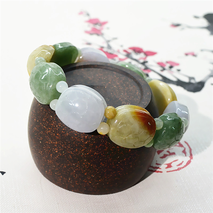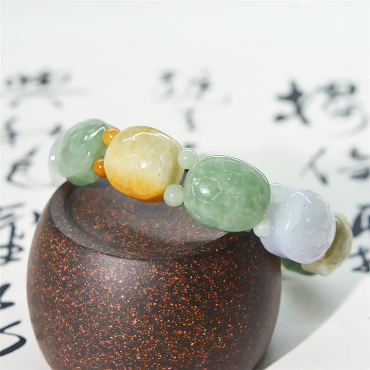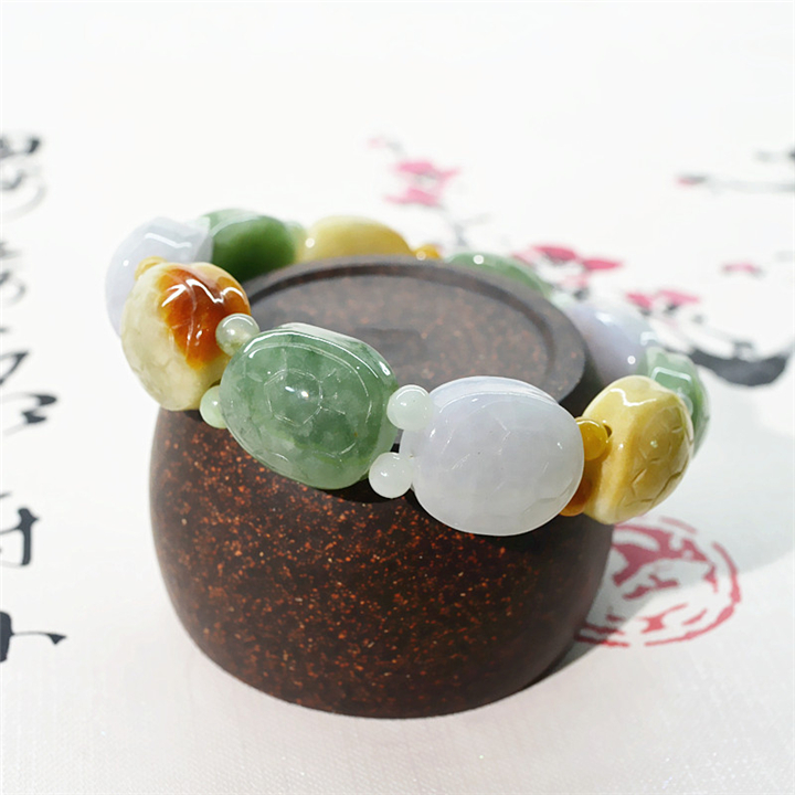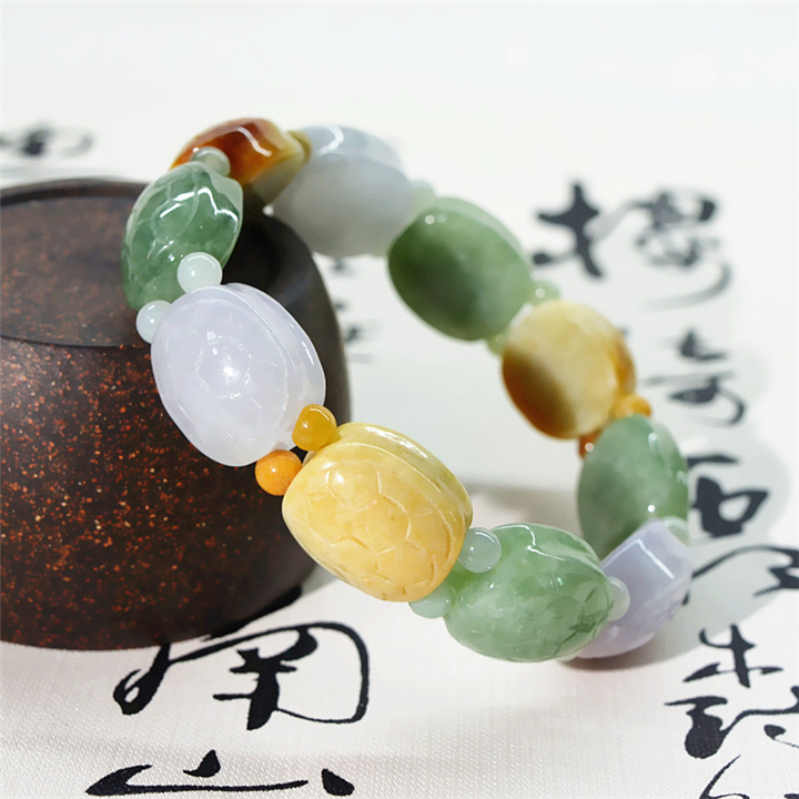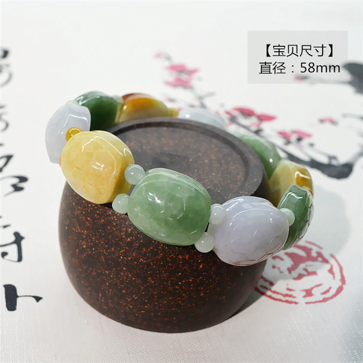 缅甸A货翡翠福寿手链富甲天下玉手串长寿三彩玉手链龟壳手排男女