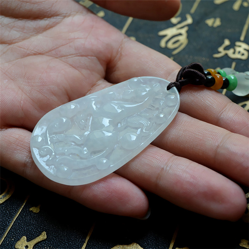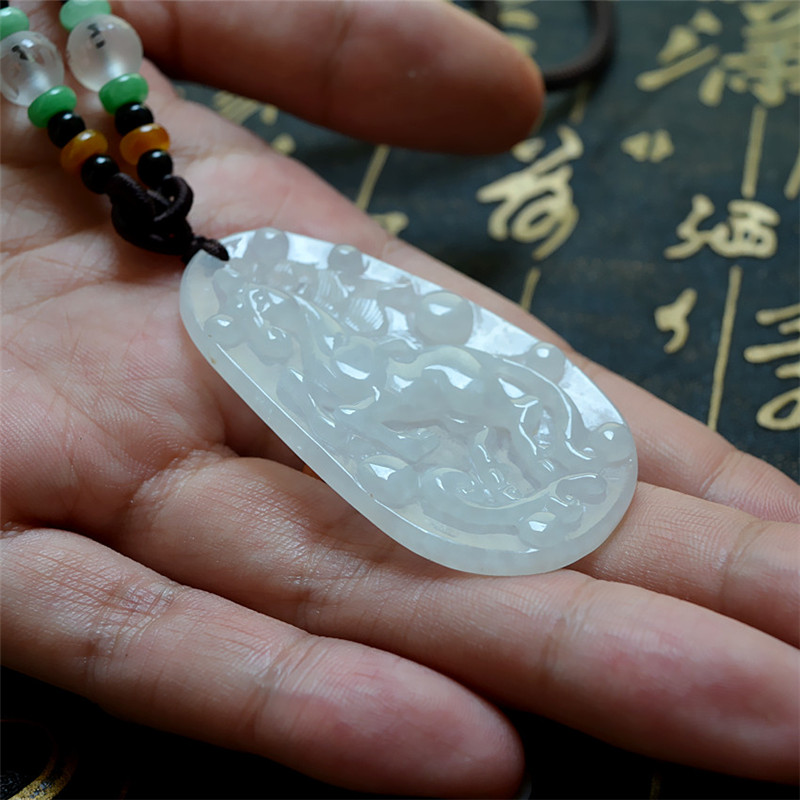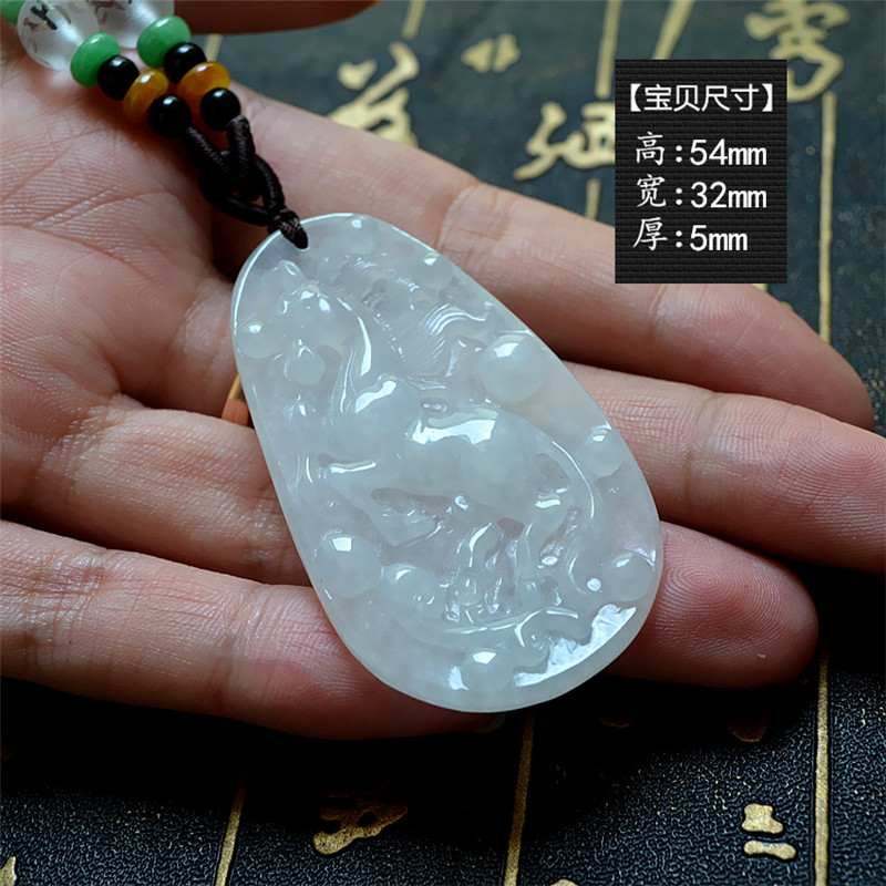 小小钰 正品天然翡翠生肖马吊坠冰种玉牌缅甸玉如意挂件A货男女款