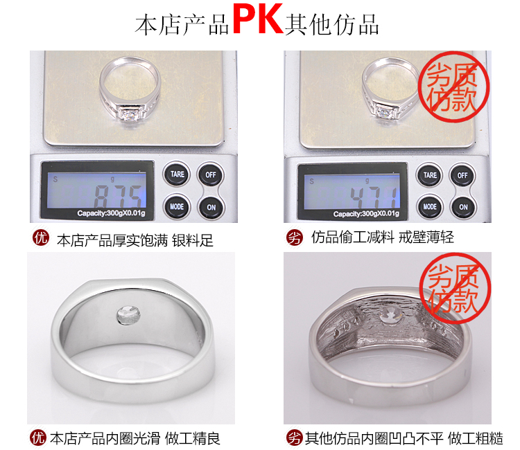 商品尺寸: | 男戒面宽约 0.9 cm 合重约 7.5g | ||