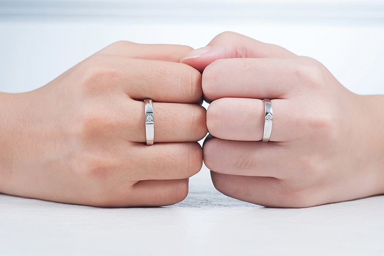 商品尺寸: | 女戒宽约0.34cm 男戒指面宽约0.4cm 重约4.5g | ||