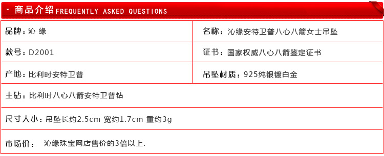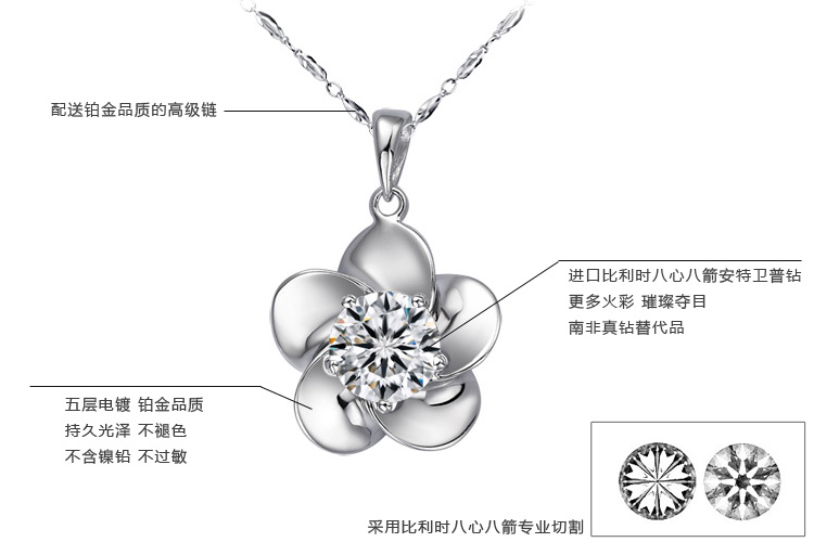 安特卫普八心八箭高档仿真钻石吊坠 铂金品质情人节礼物