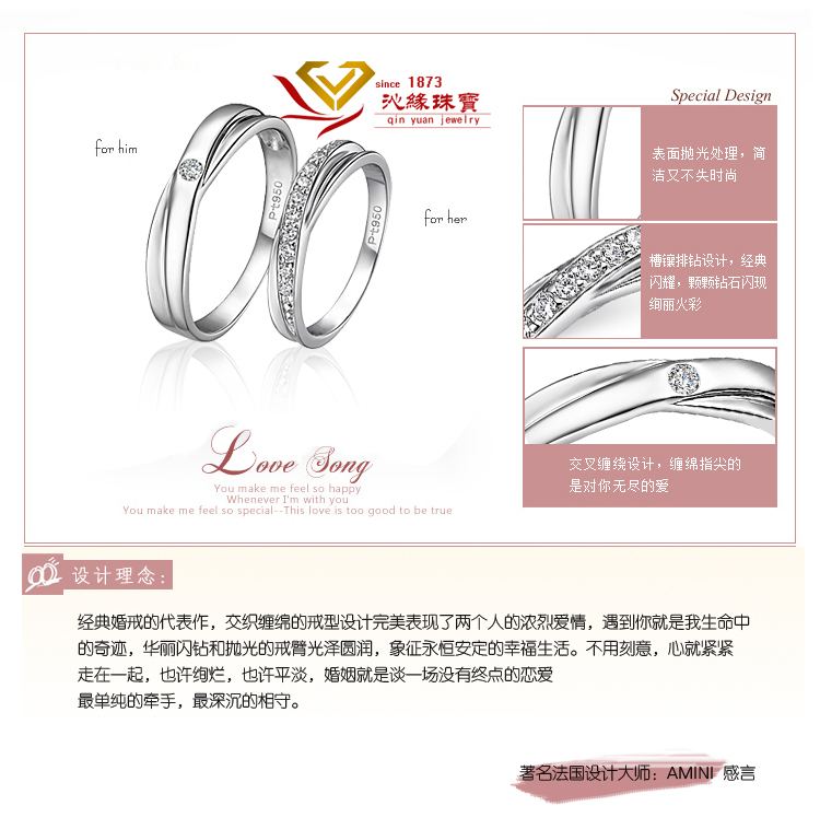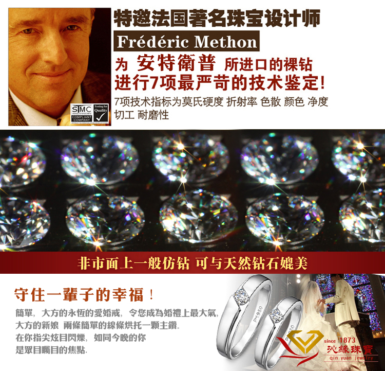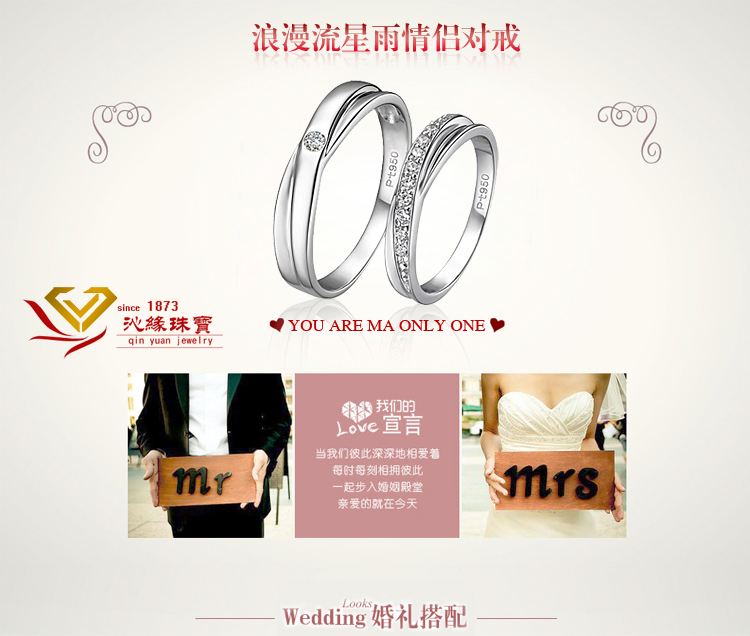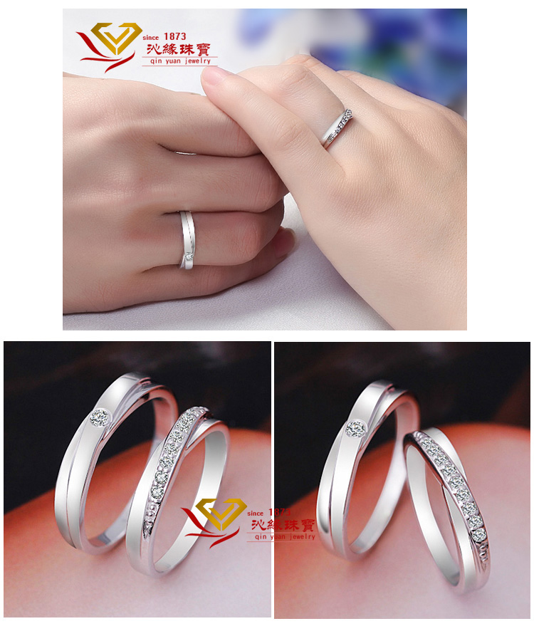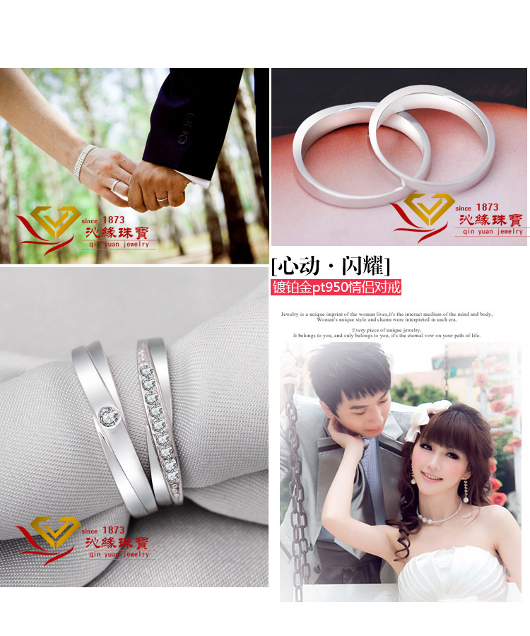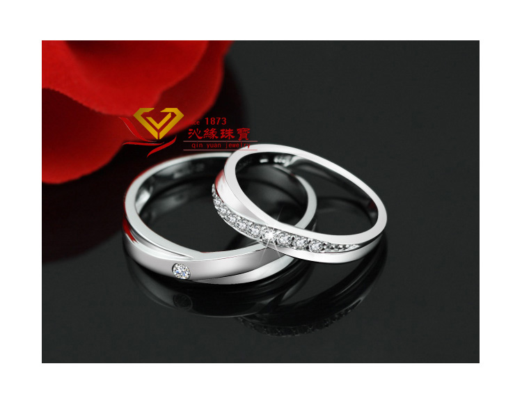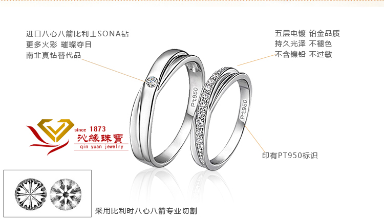 PT950情侣戒指 订婚戒 高档镀铂金仿真钻戒男女情侣对戒SONA钻