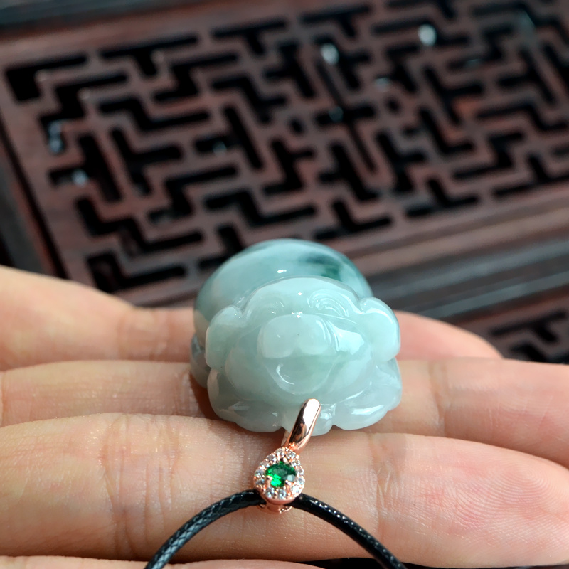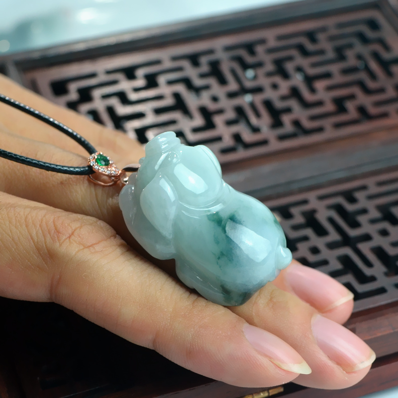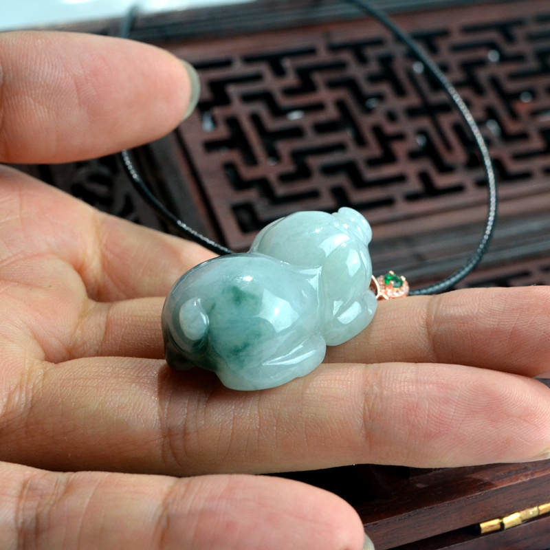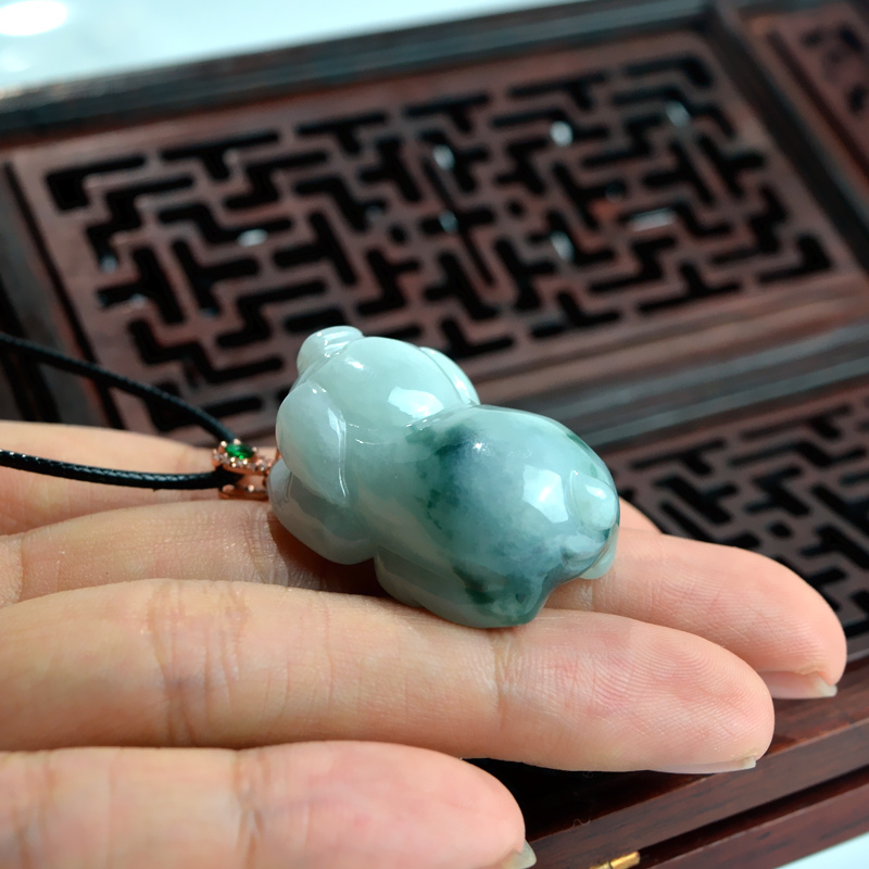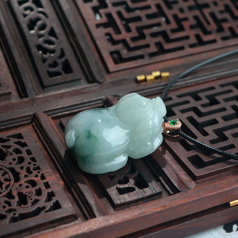 飘花立体生肖小猪天然缅甸玉翡翠玉猪发财猪吊坠挂件男女士款吊坠