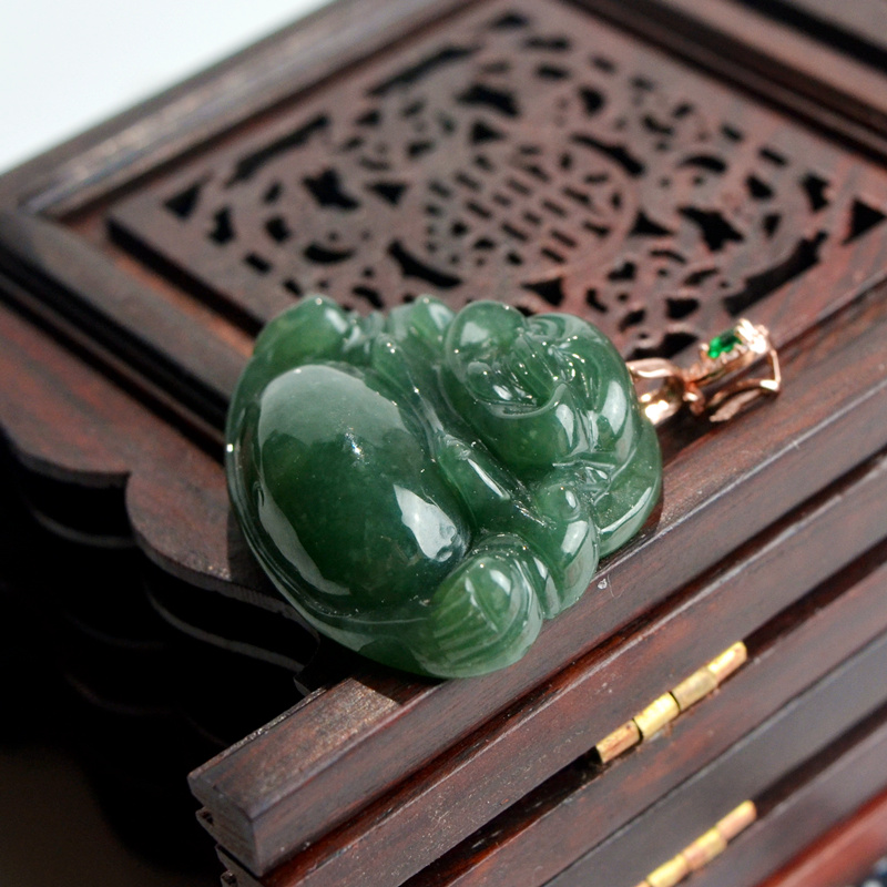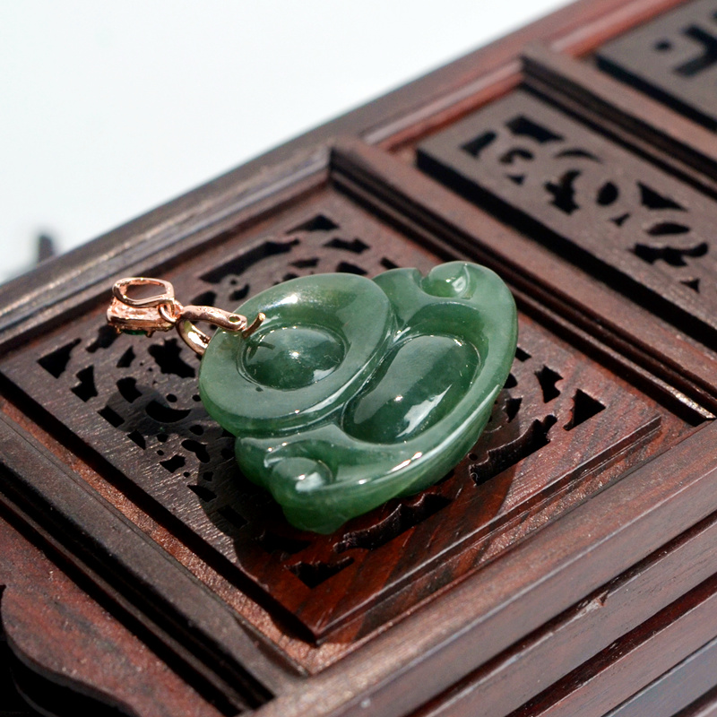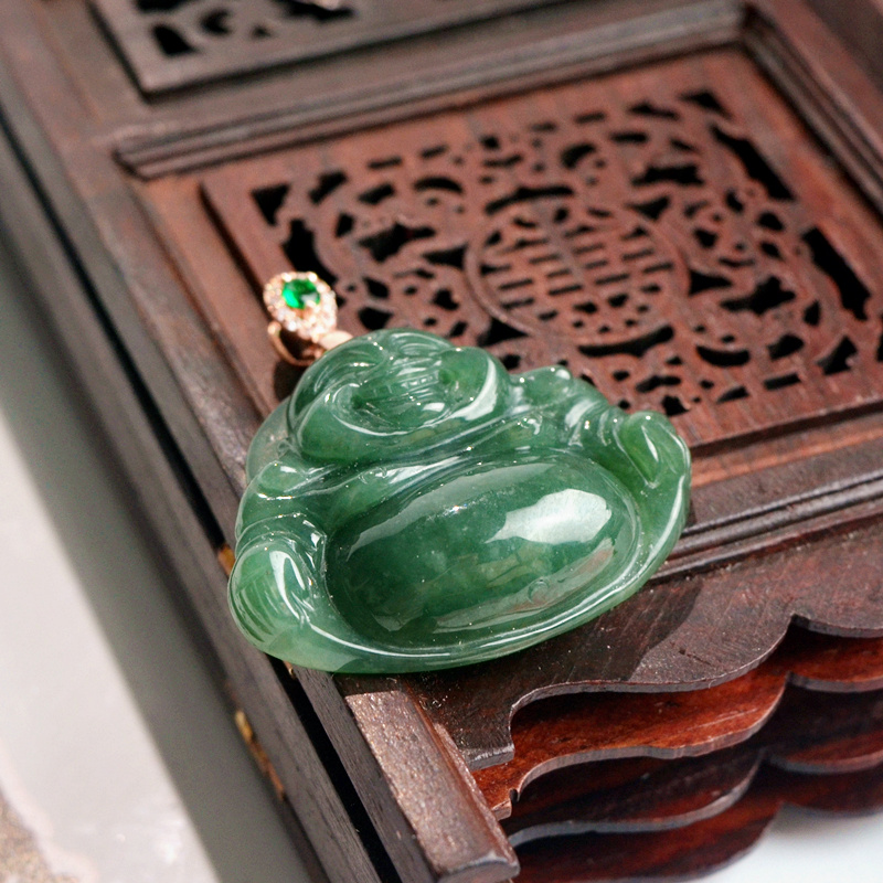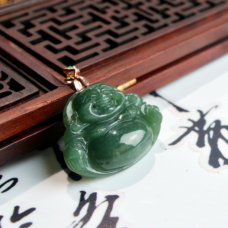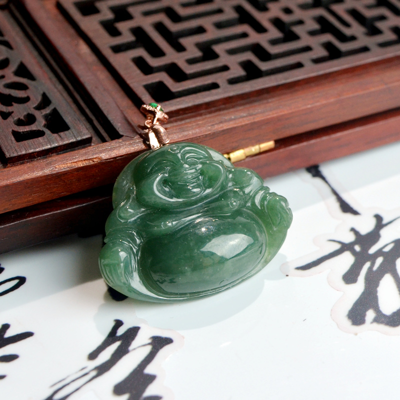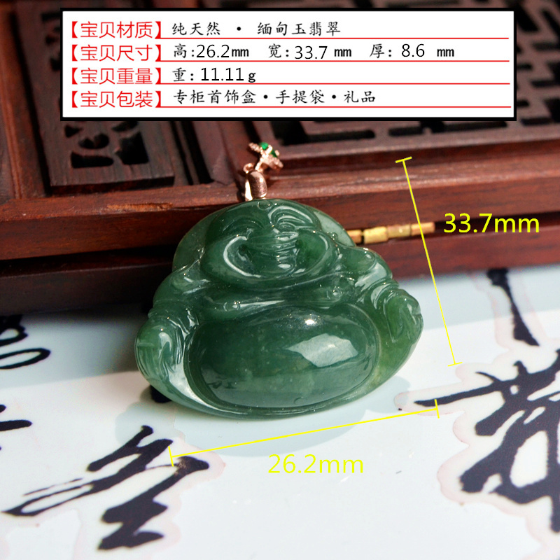 天然A货翡翠吊坠女款玉佛缅甸玉油清种翡翠笑佛玉石挂件弥勒佛公