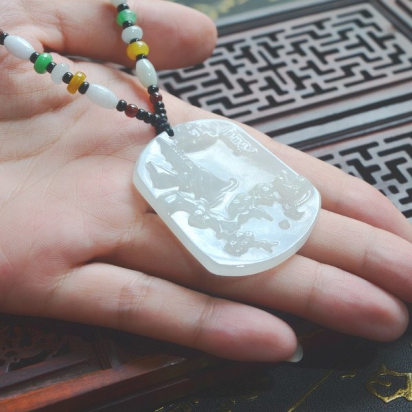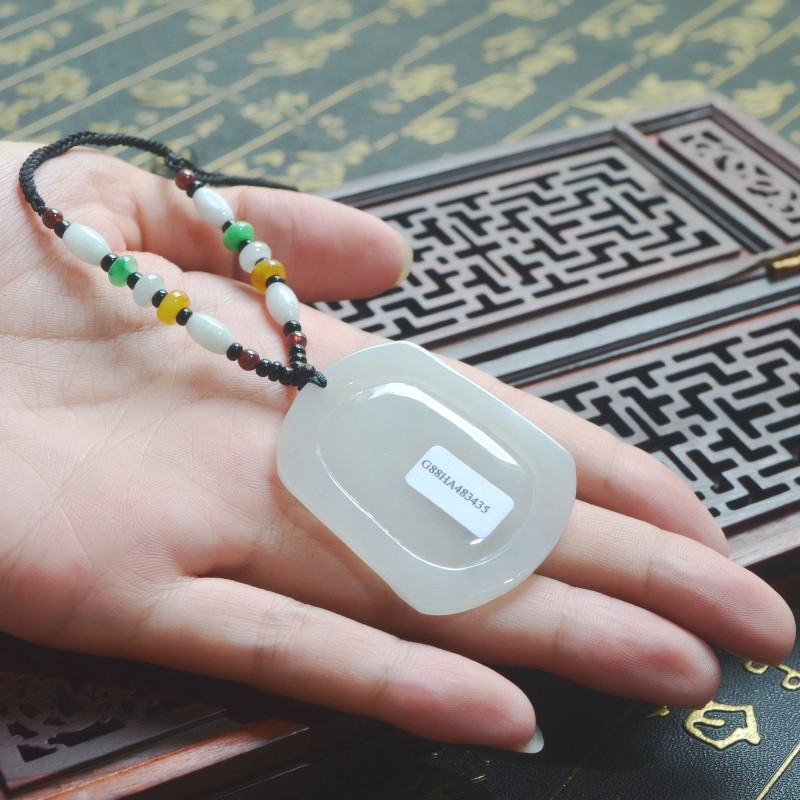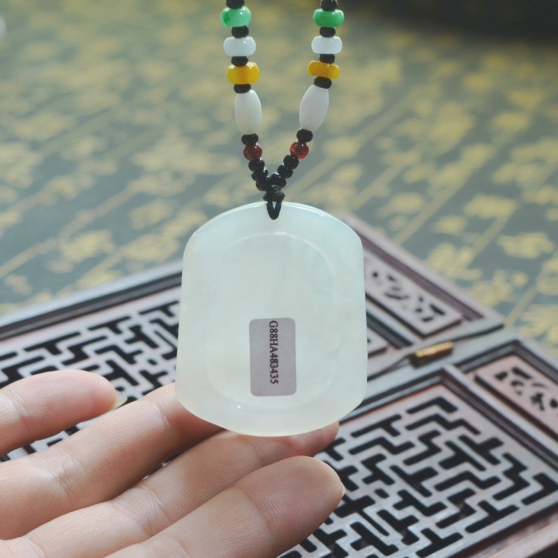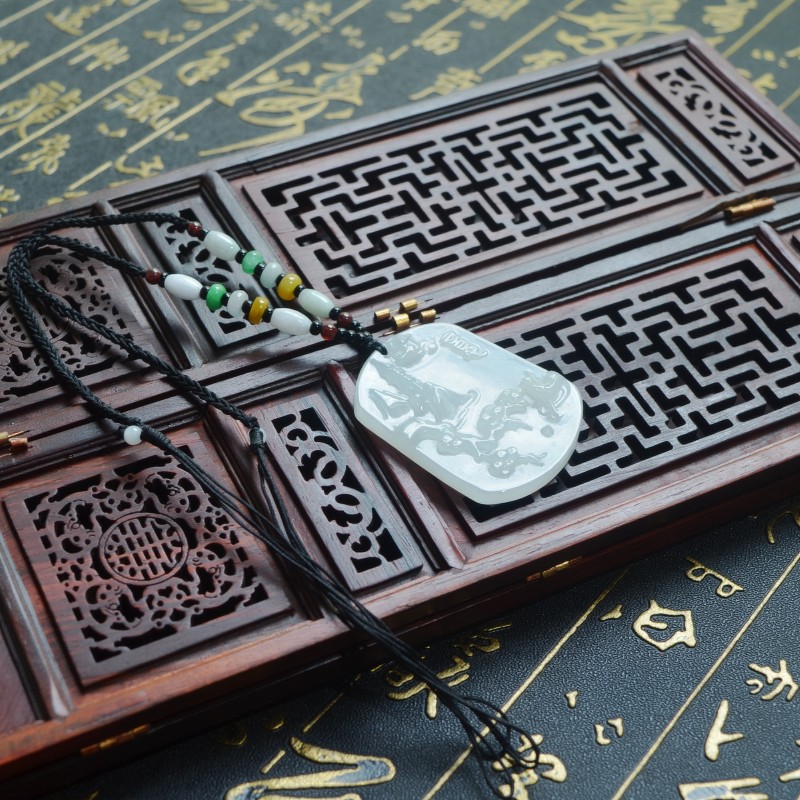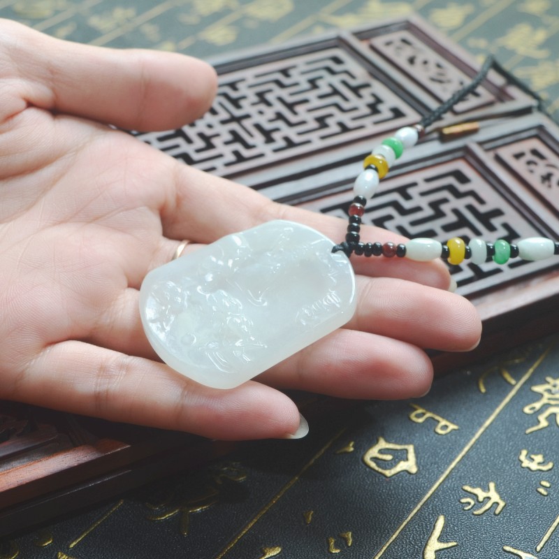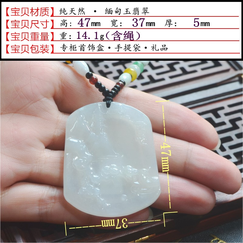 缅甸天然翡翠a货山水牌冰糯种玉牌玉佩吊坠挂件项链花开富贵玉坠