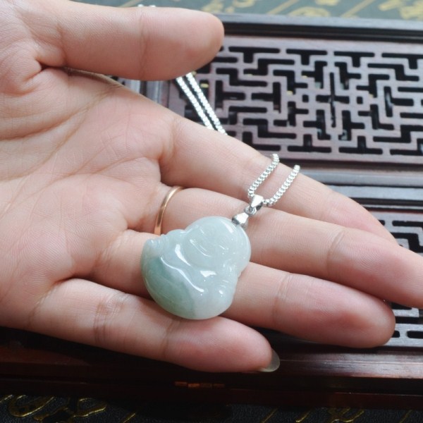 缅甸翡翠玉佛吊坠女款玉吊坠笑佛弥勒佛吊坠天然玉石吊坠带绿糯种