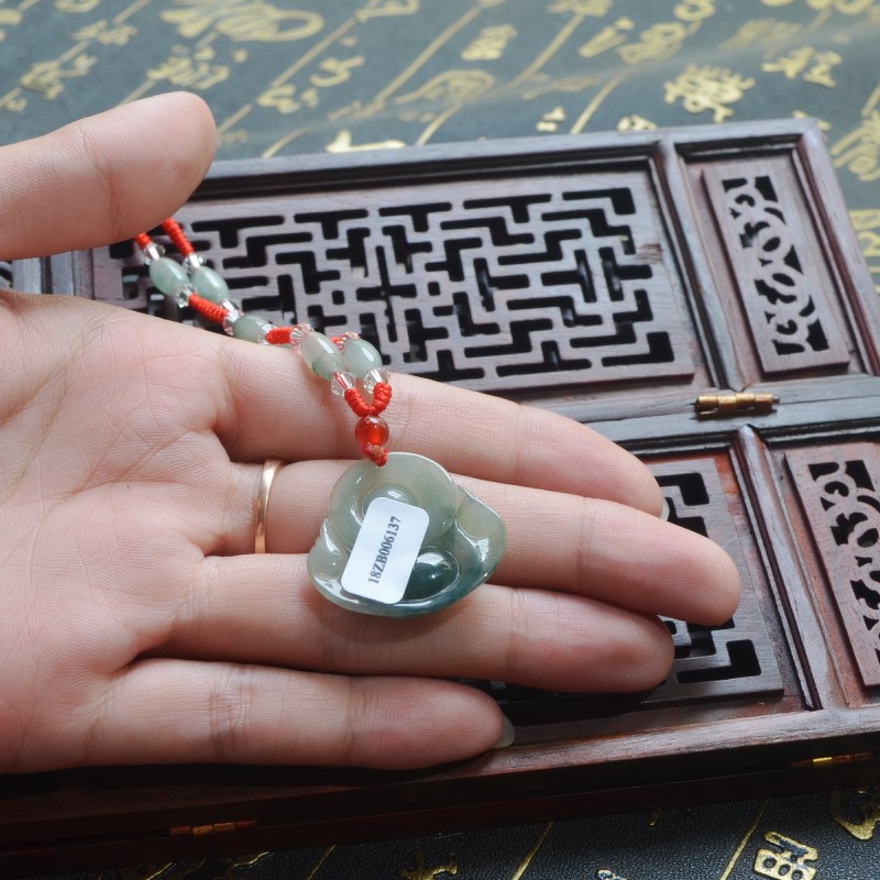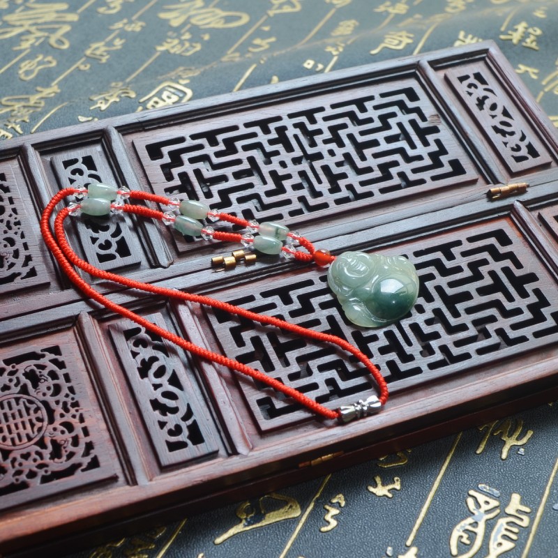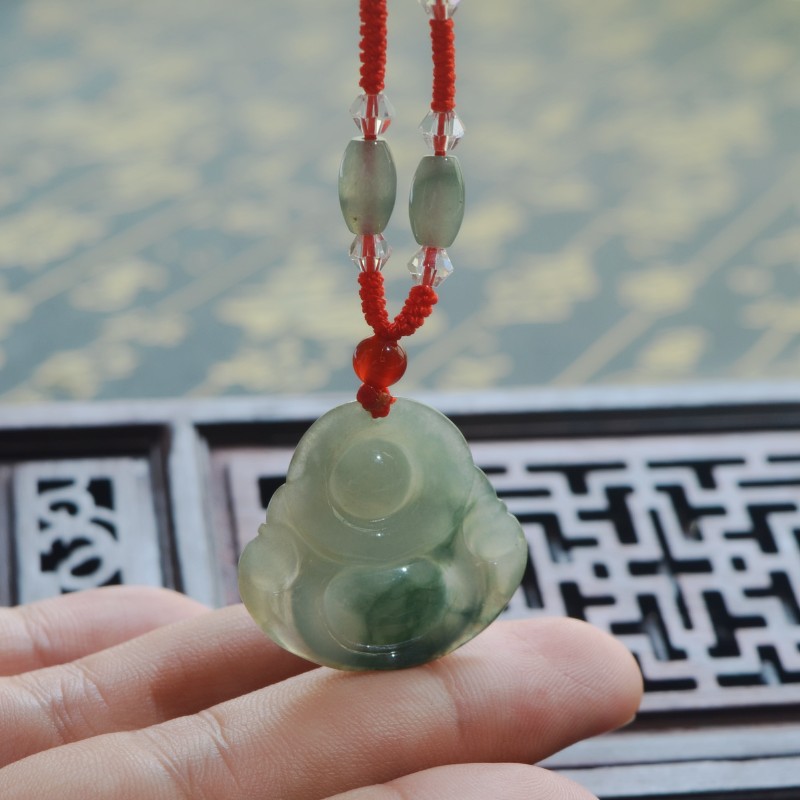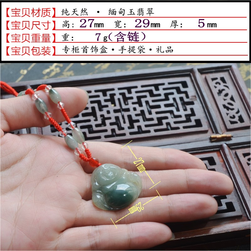 冰种飘花翡翠玉佛吊坠女款笑佛天然A货弥勒佛公项链缅甸玉石挂件