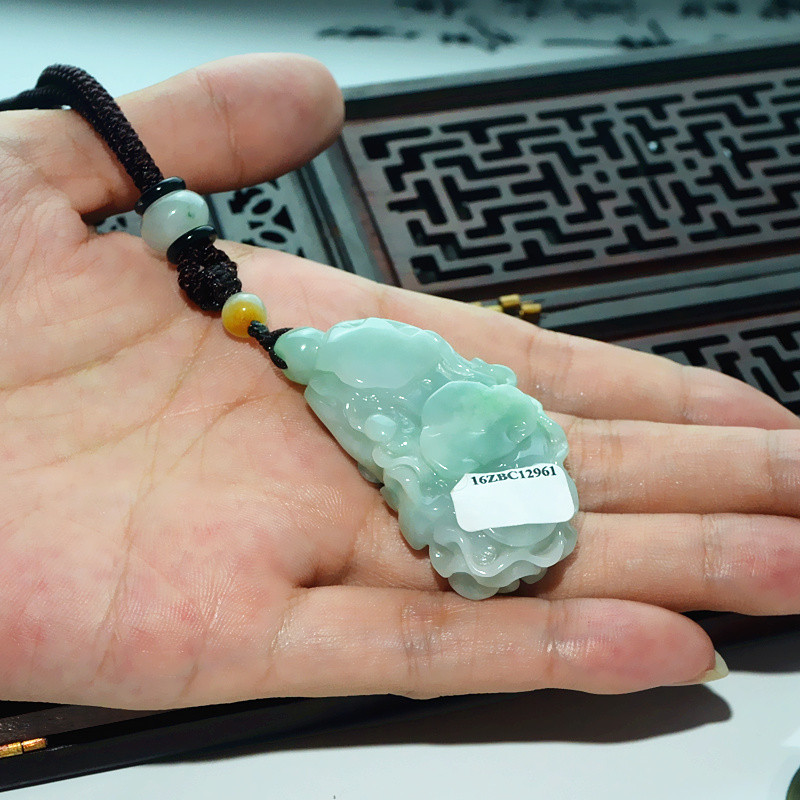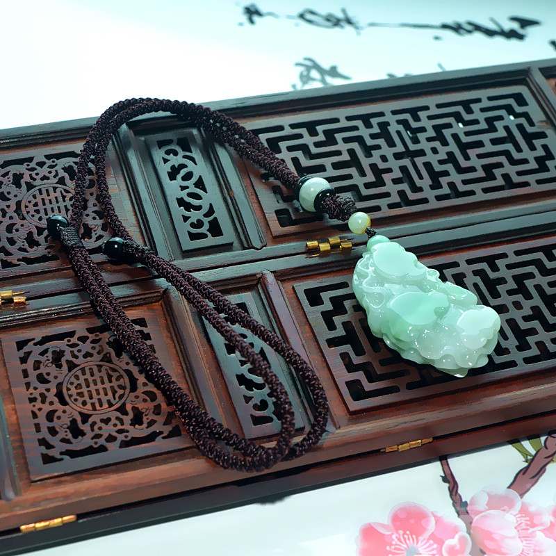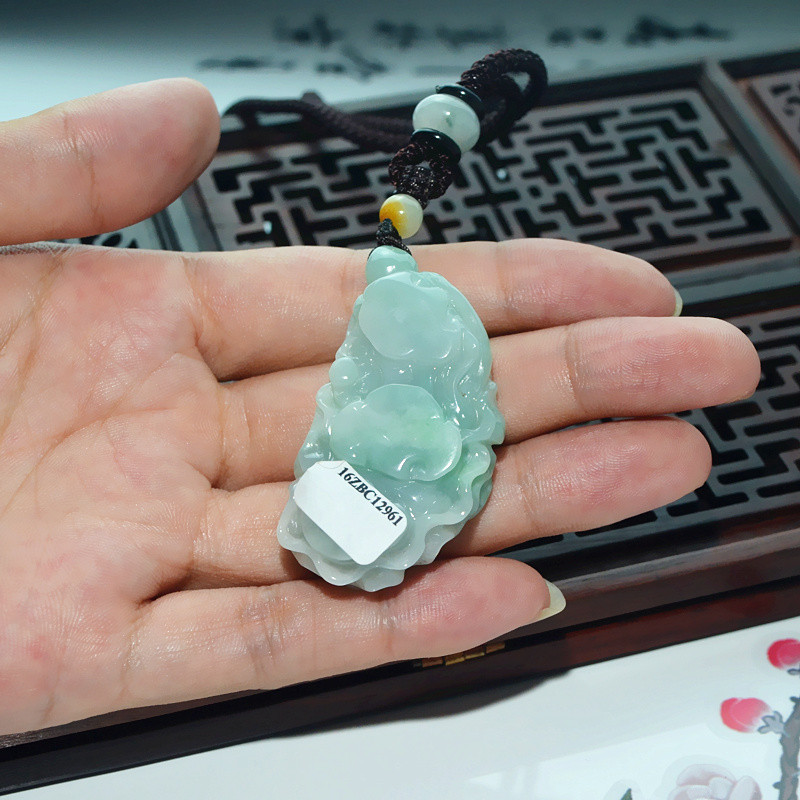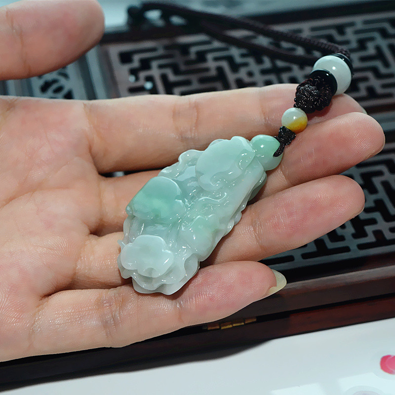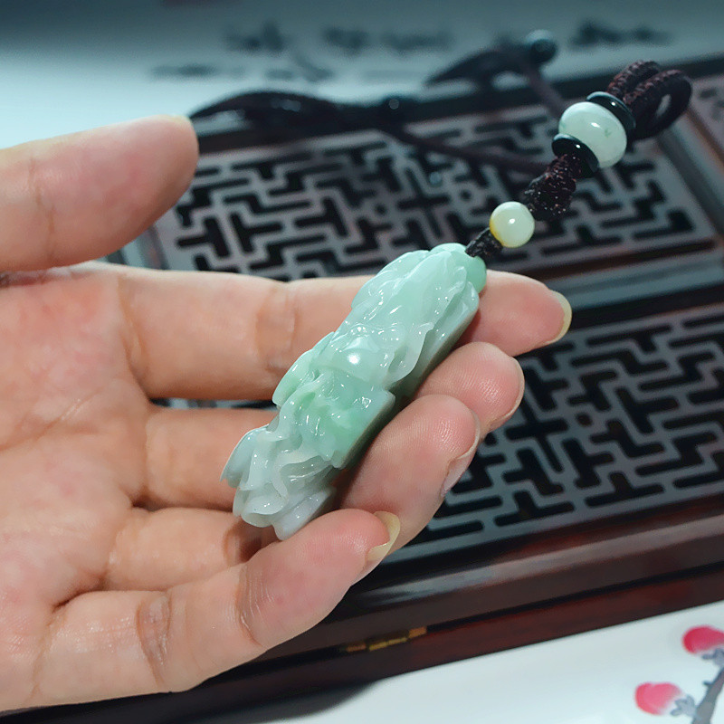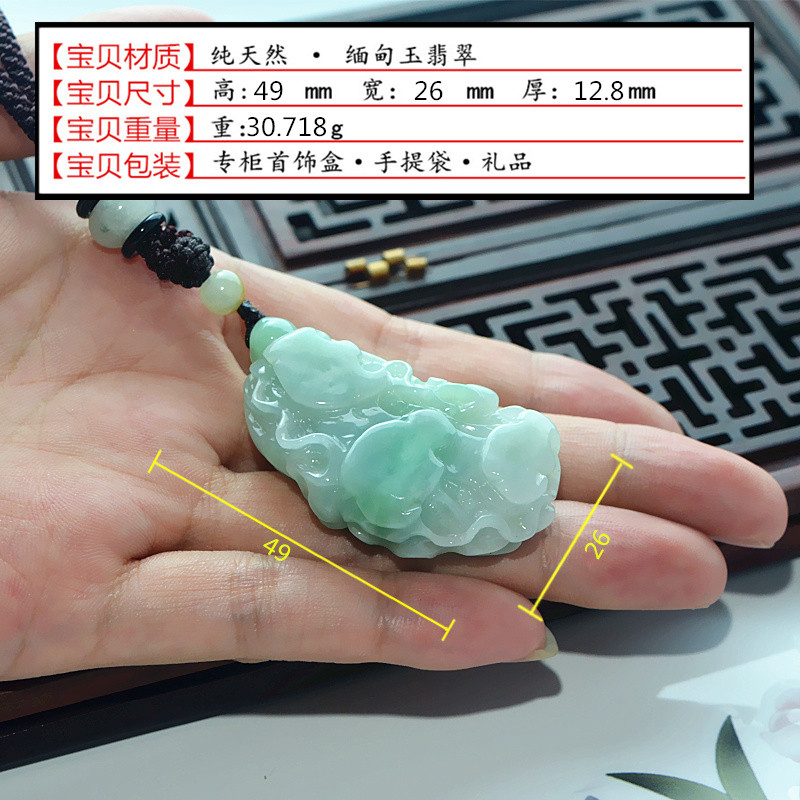 缅甸玉天然翡翠A货精雕飘绿招财白菜白菜聚来吊坠挂件男女款玉器
