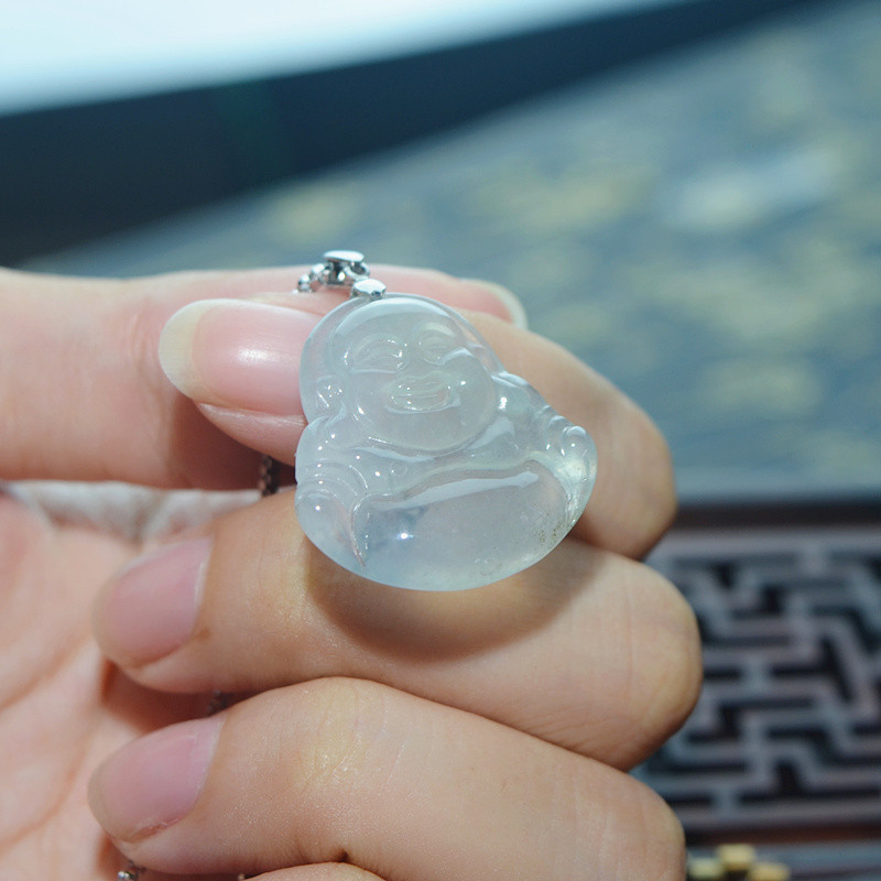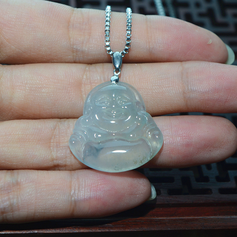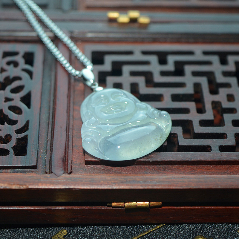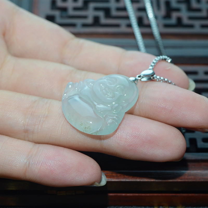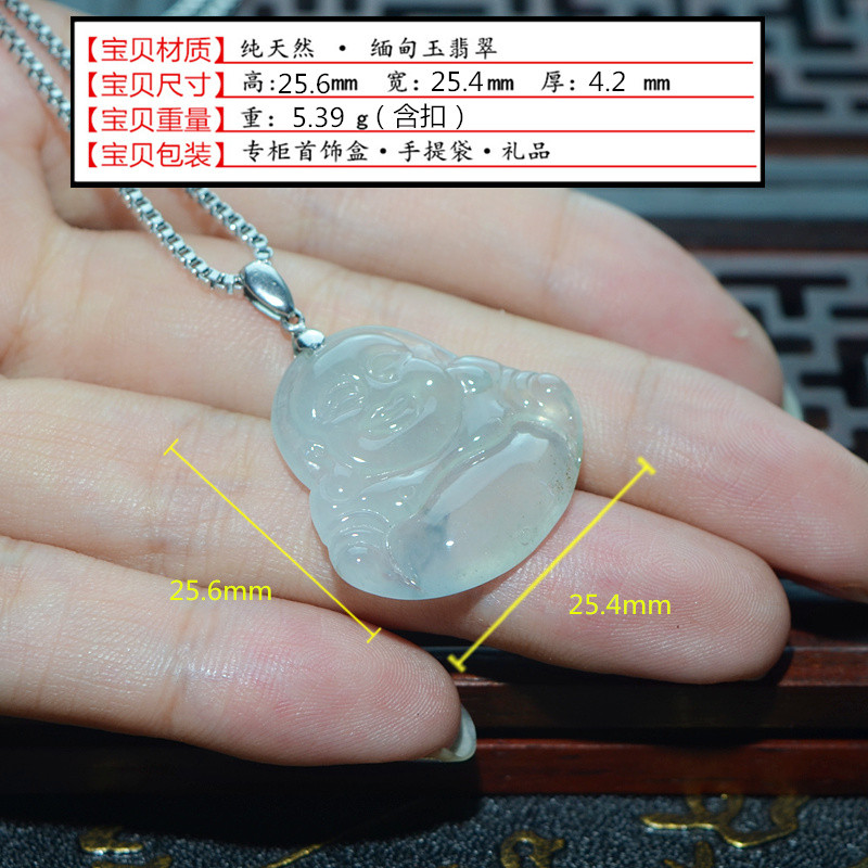 玉佛吊坠女款冰种翡翠佛公玉弥勒佛吊坠A货玉石玉坠笑佛玉石挂件