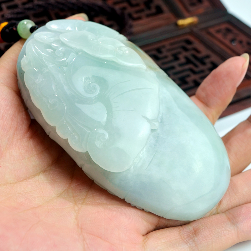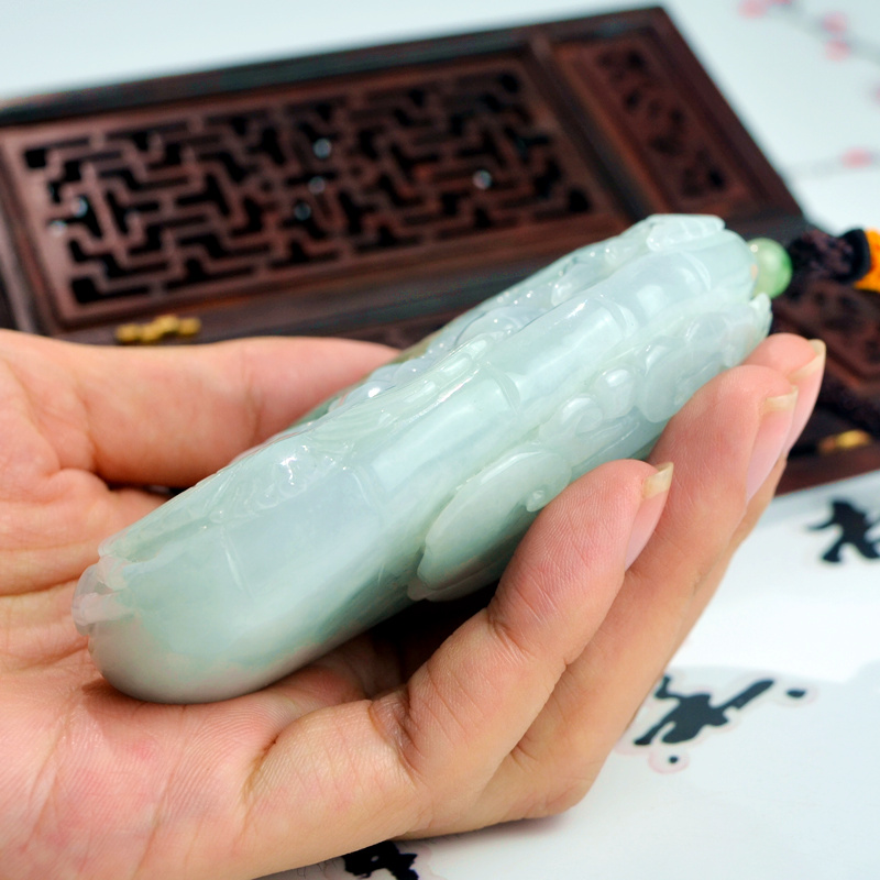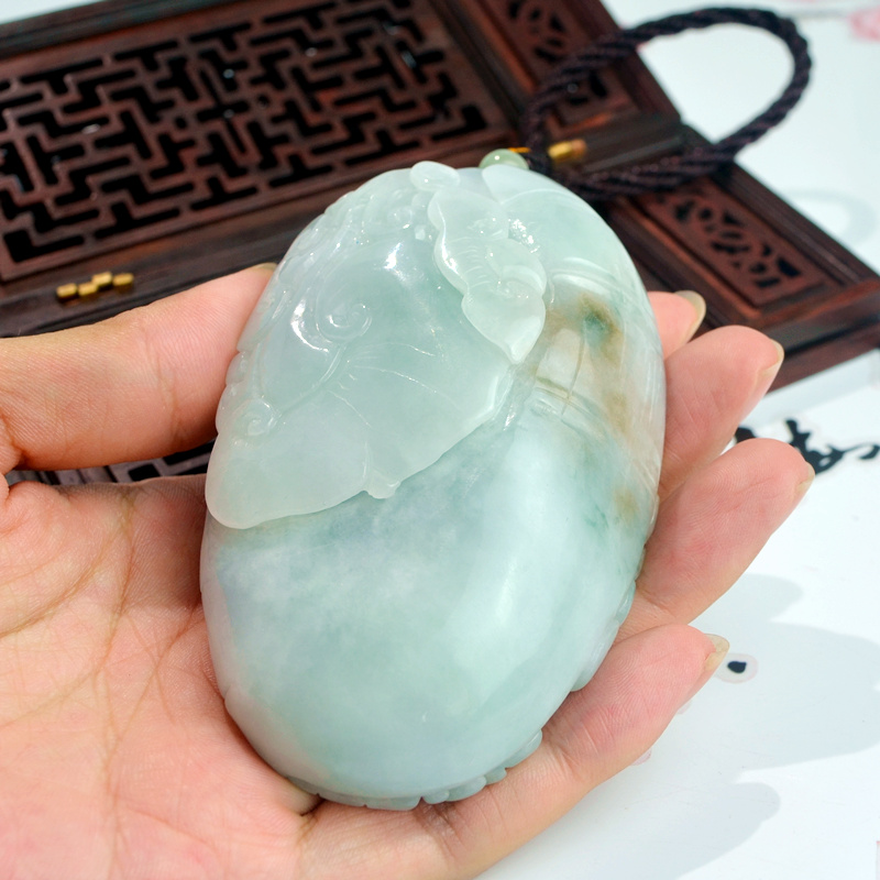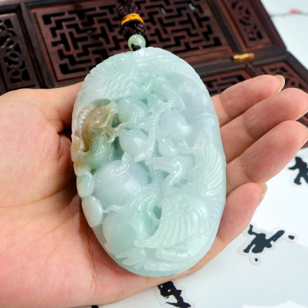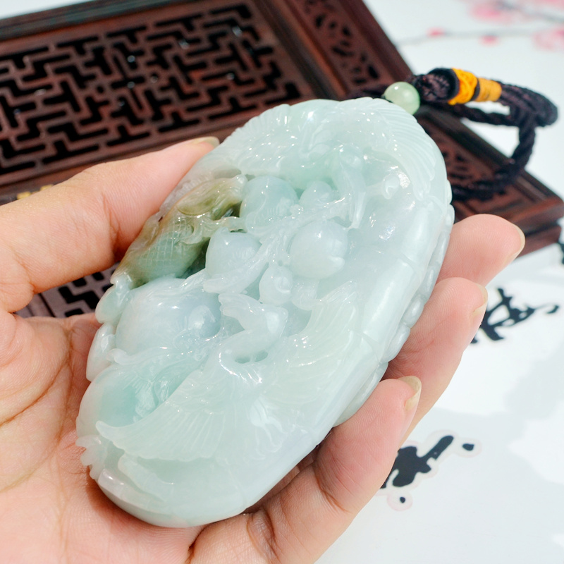 正品缅甸玉a货天然翡翠松鹤延年美满如意玉石手把件年年有余把件