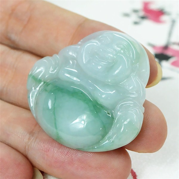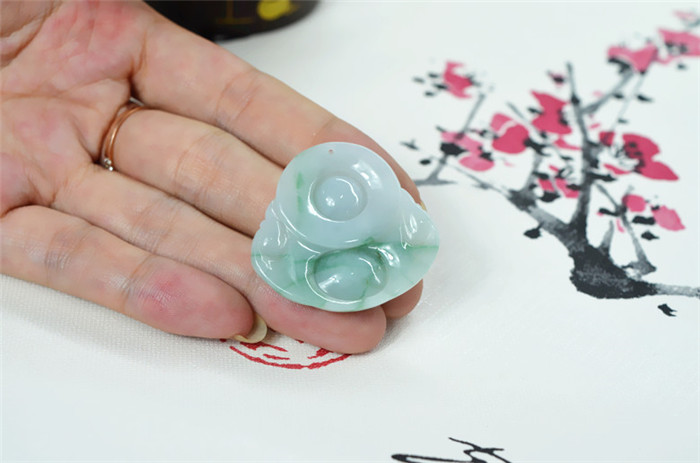 翡翠大玉佛吊坠天然a货缅甸老坑冰糯种佛公笑佛项链玉坠挂件