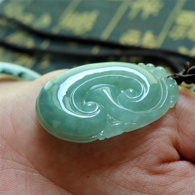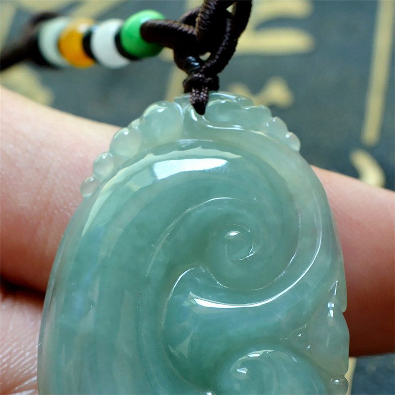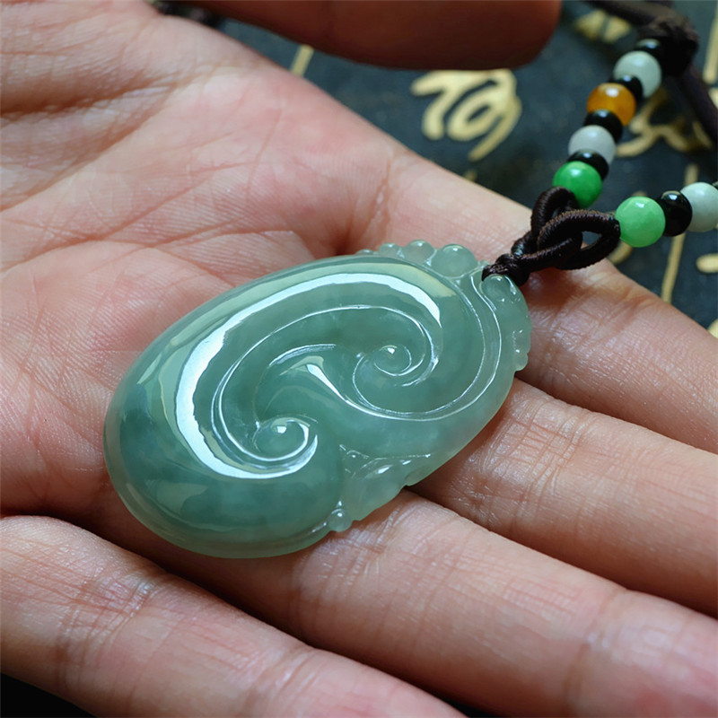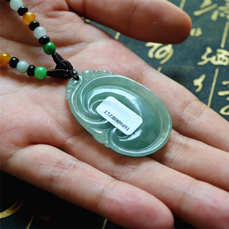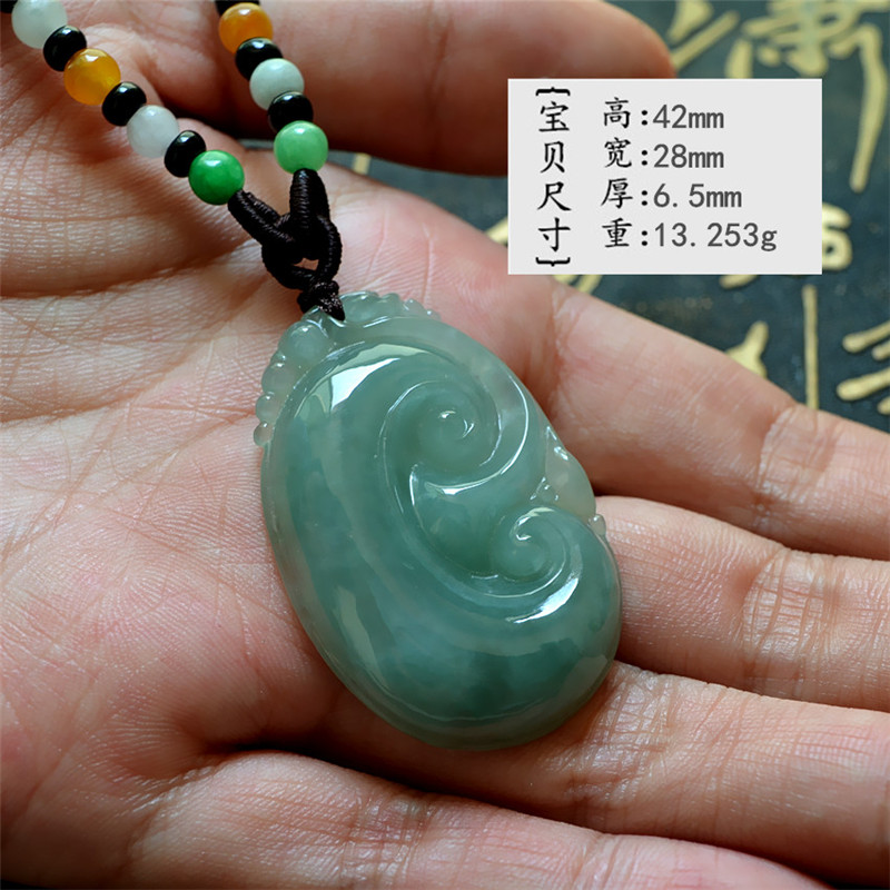 天然a货翡翠玉如意灵芝吊坠大树叶子小富贵四季豆女款颈饰带证书