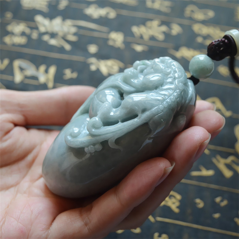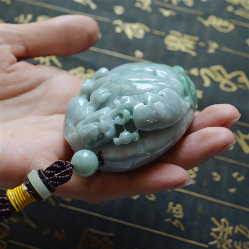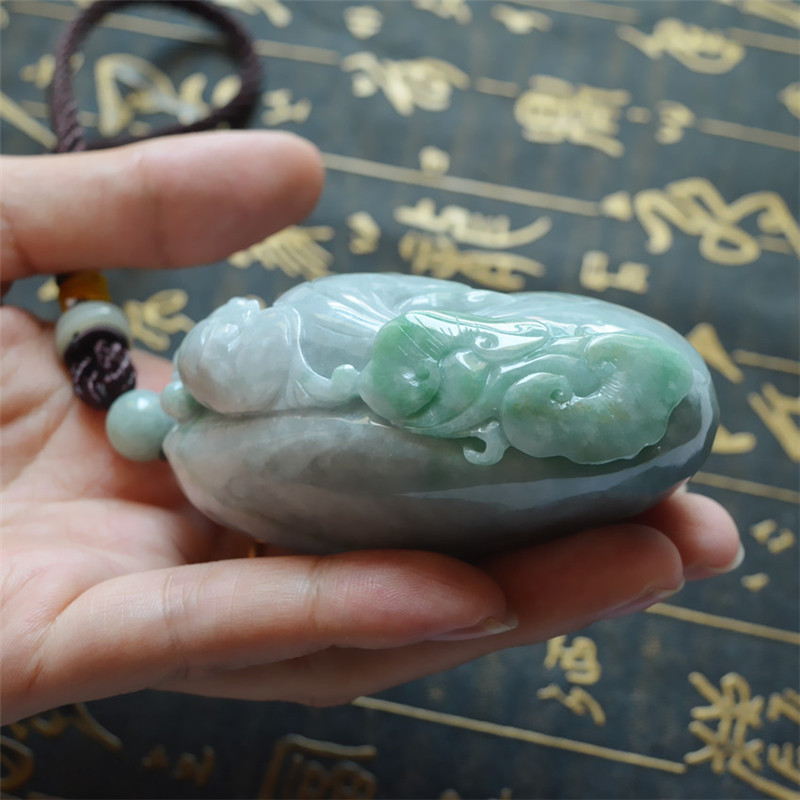小小钰天然飘绿翡翠貔貅招财进宝手把件代代幸福美满如意手玩件