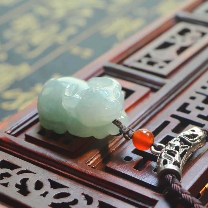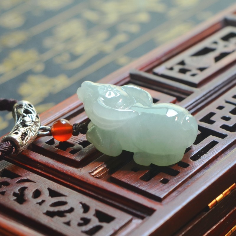 缅甸A货翡翠立体生肖牛 天然玉石牛生肖玉坠 翡翠玉吊坠 牛12生肖