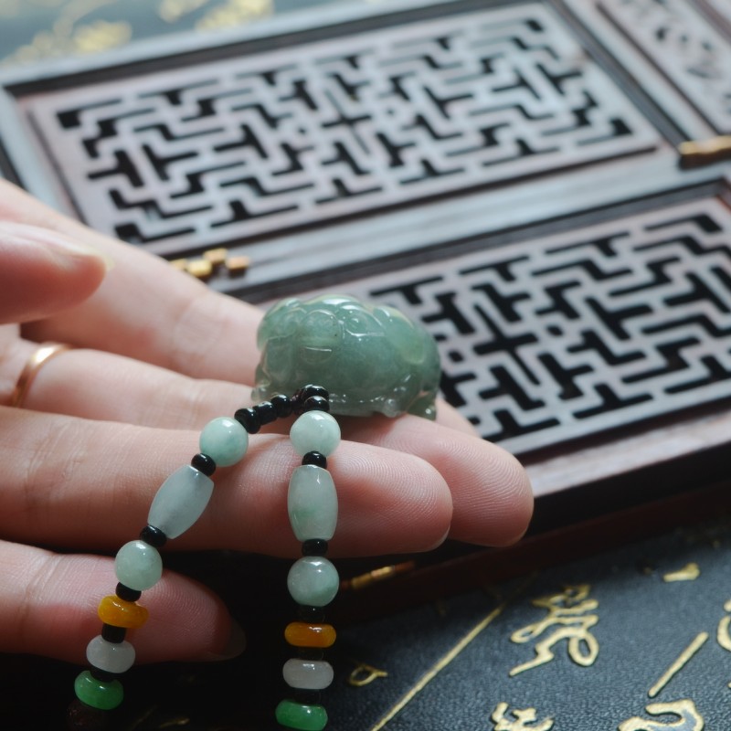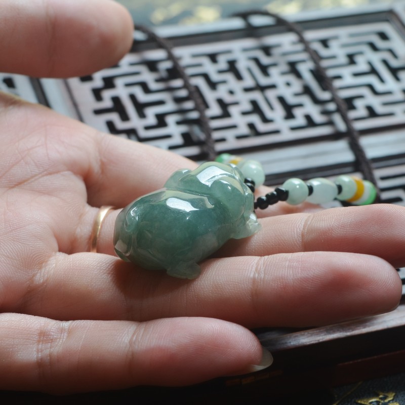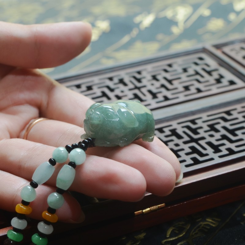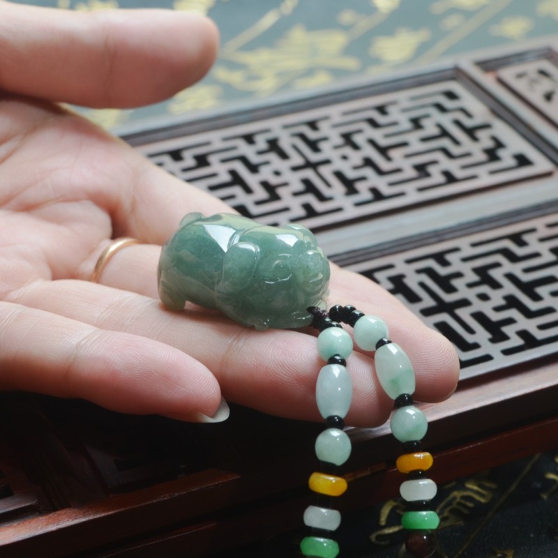 立体精雕生肖小猪天然缅甸A货油清翡翠玉猪发财猪吊坠挂件男女款