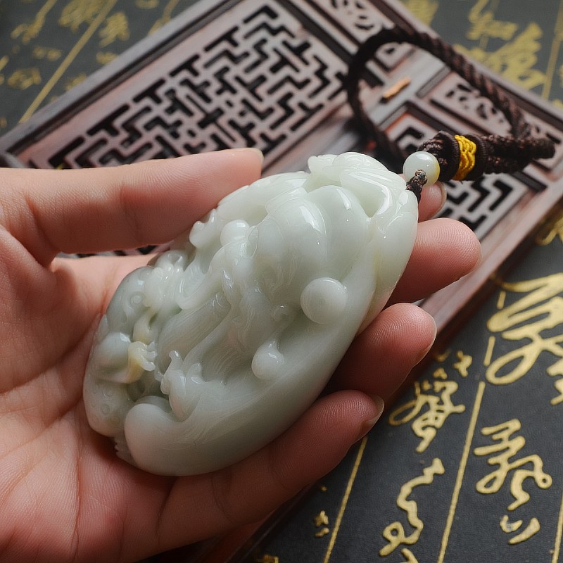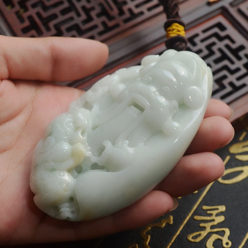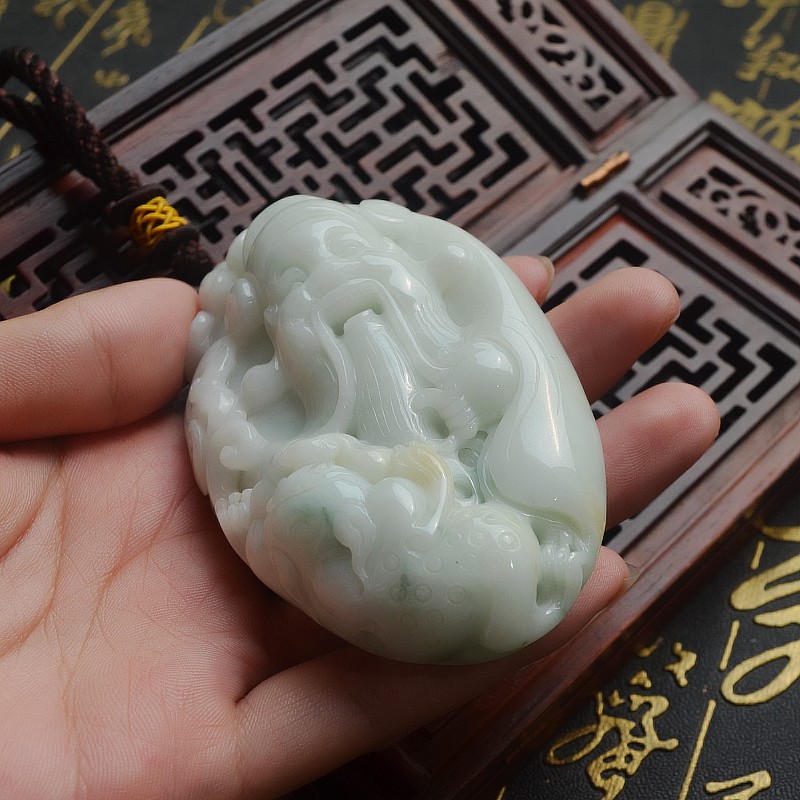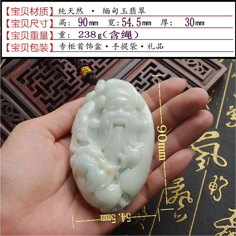 缅甸天然A货翡翠老种糯种精工雕财神爷招财瑞兽麒麟如意手把件