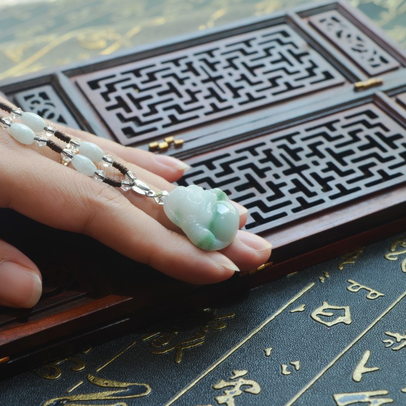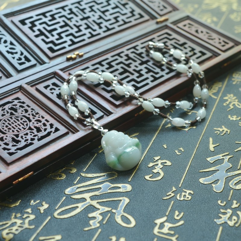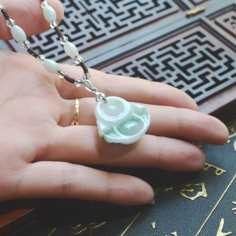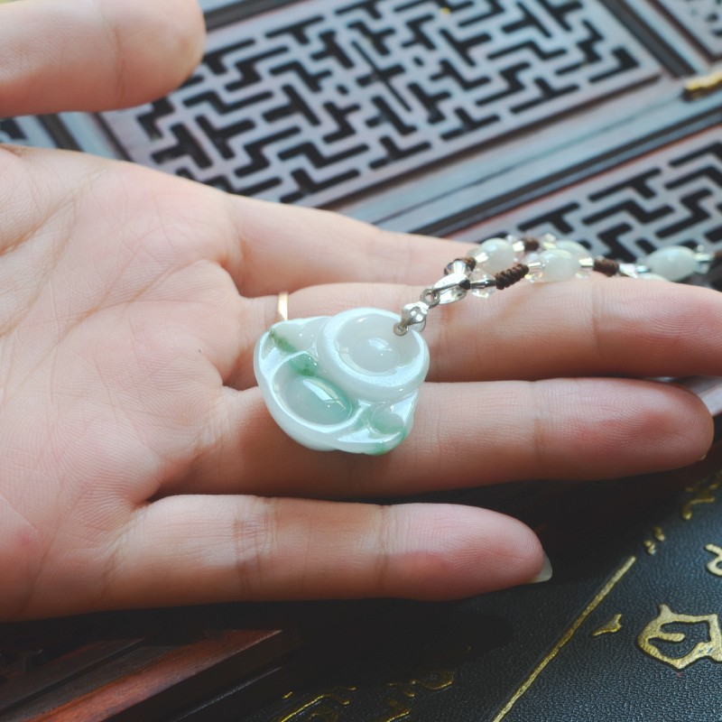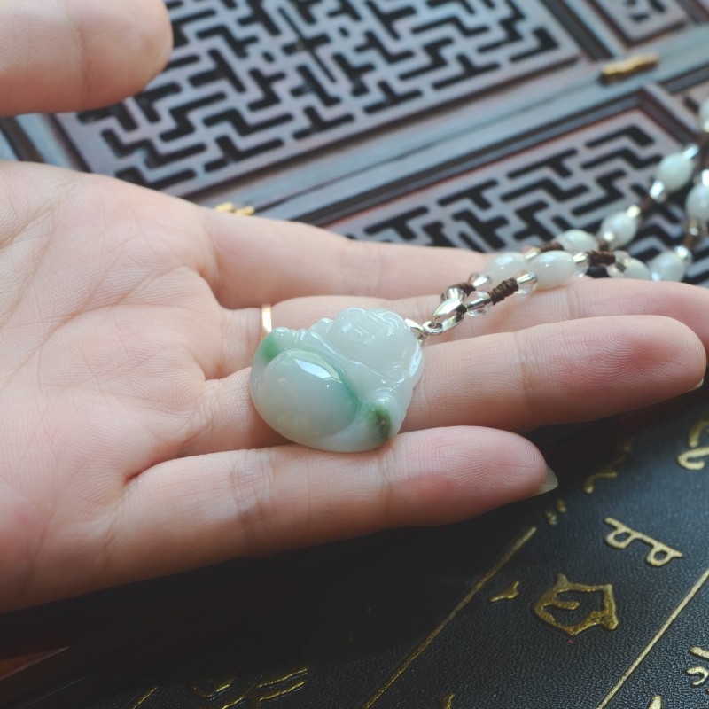 天然翡翠A货带绿佛吊坠佛公笑佛带链玉石弥勒佛挂件送女朋友礼物