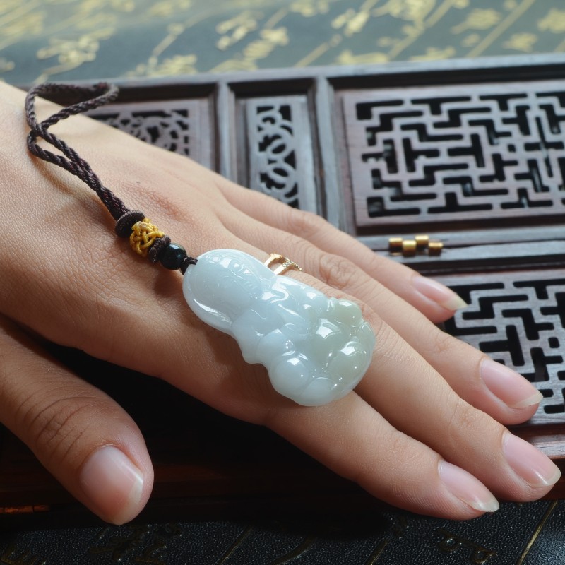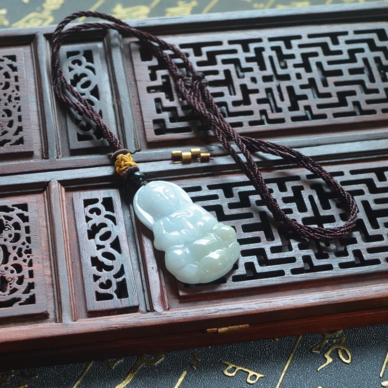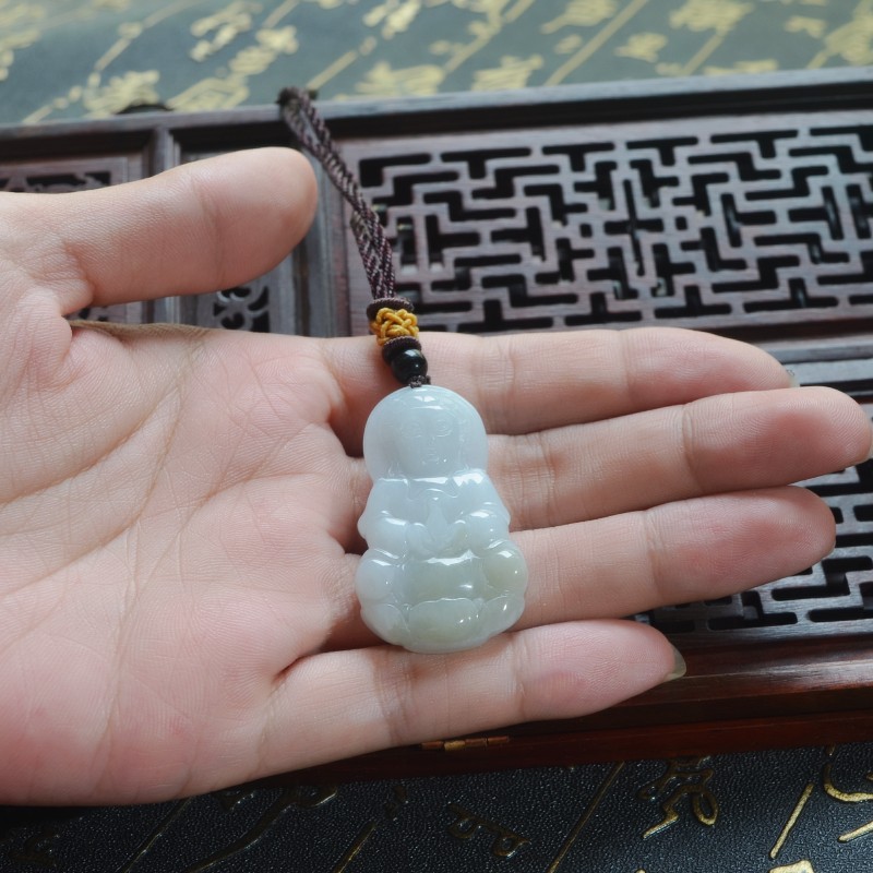 天然玉石翡翠A货带黄玉观音男女情侣吊坠项链玉佩玉坠挂件送证书