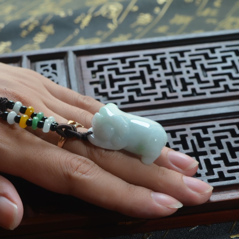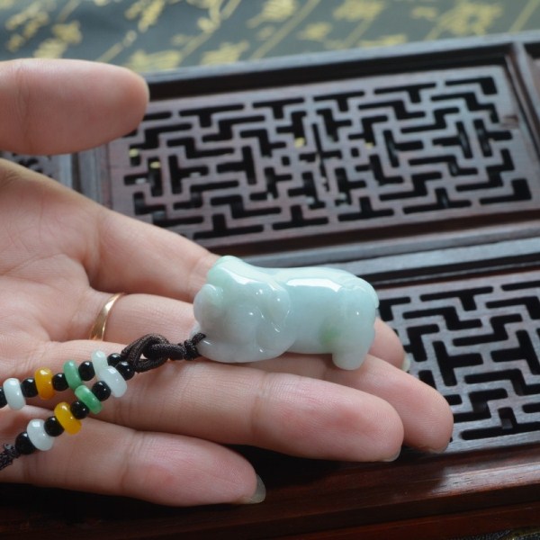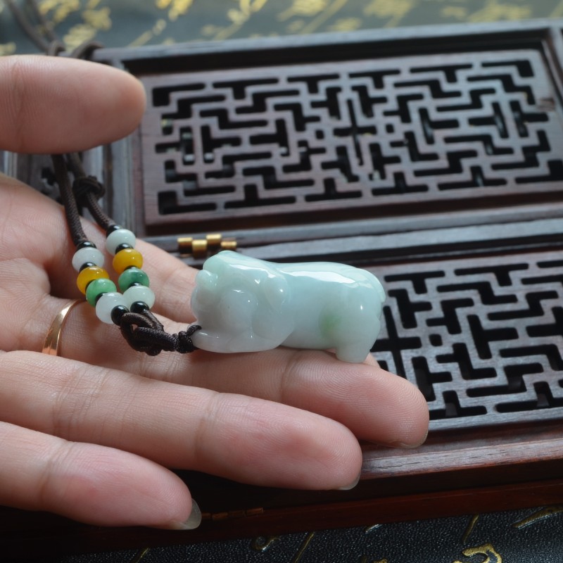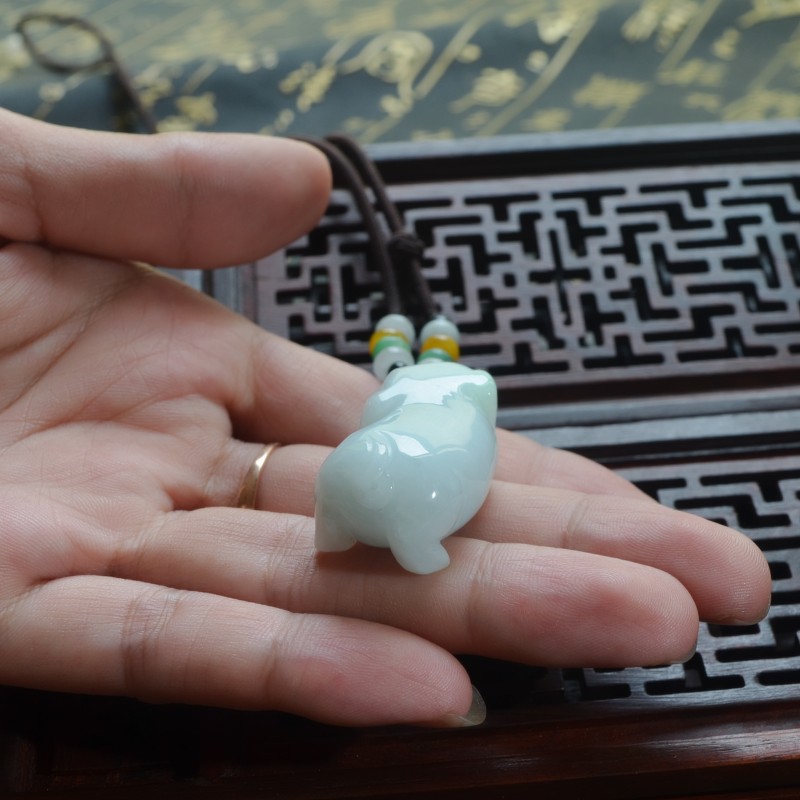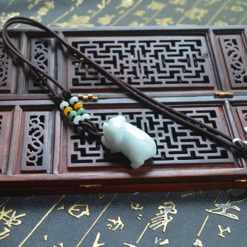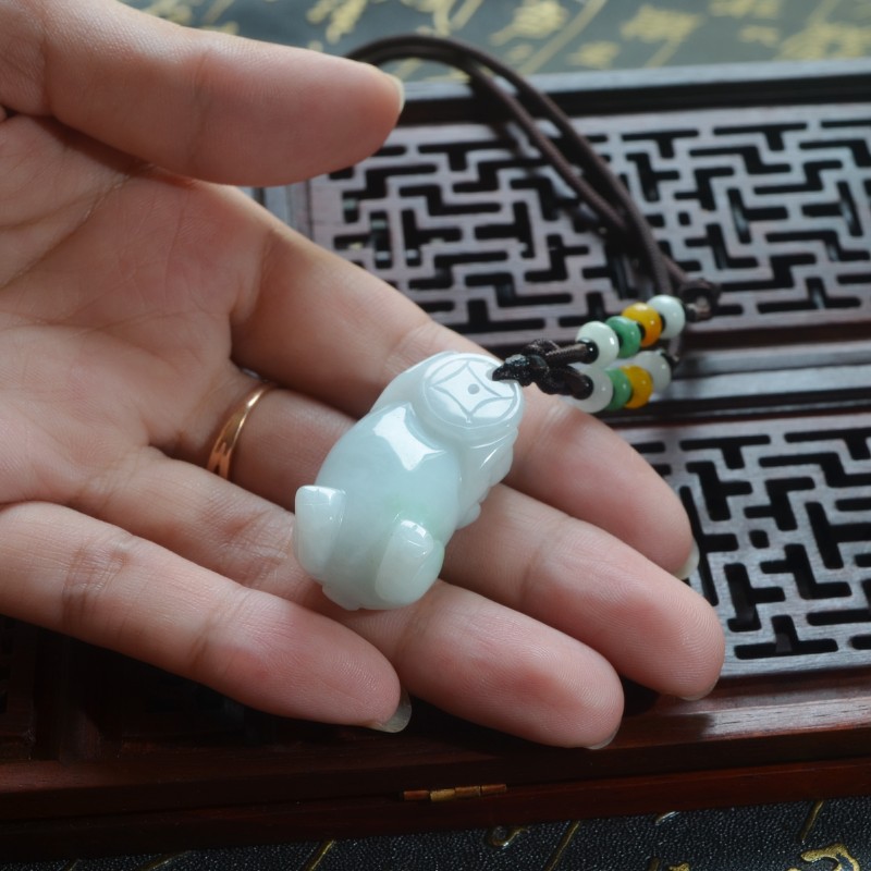 可爱精雕发财猪天然缅甸A货翡翠玉猪吊坠挂件男女士款立体生肖猪