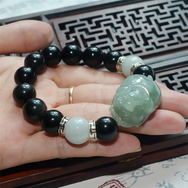 可爱小猪手链缅甸翡翠散珠油青冰糯种天然a货冰油玉珠子手链圆珠