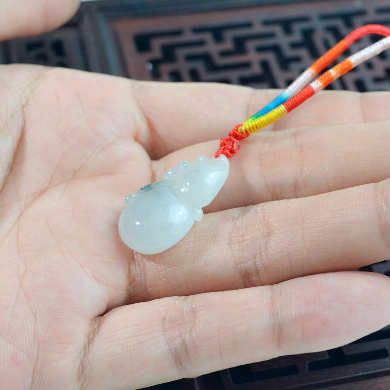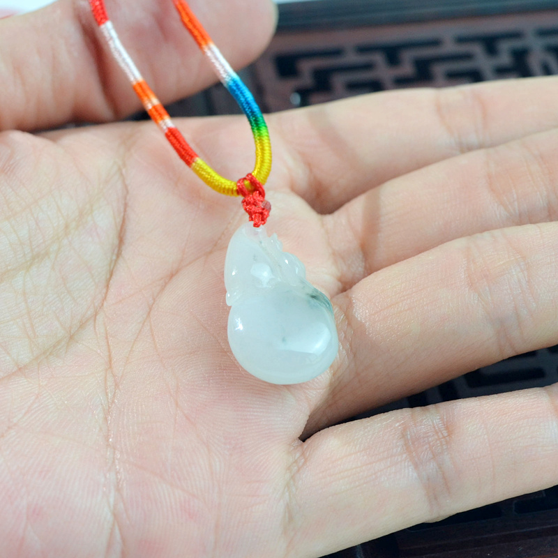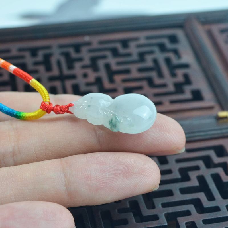 正品天然缅甸玉飘花翡翠玉葫芦吊坠男女款宝宝玉坠小孩福禄挂件