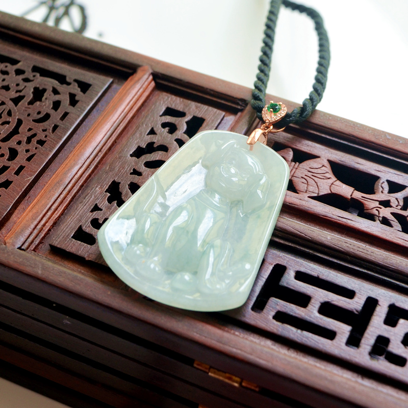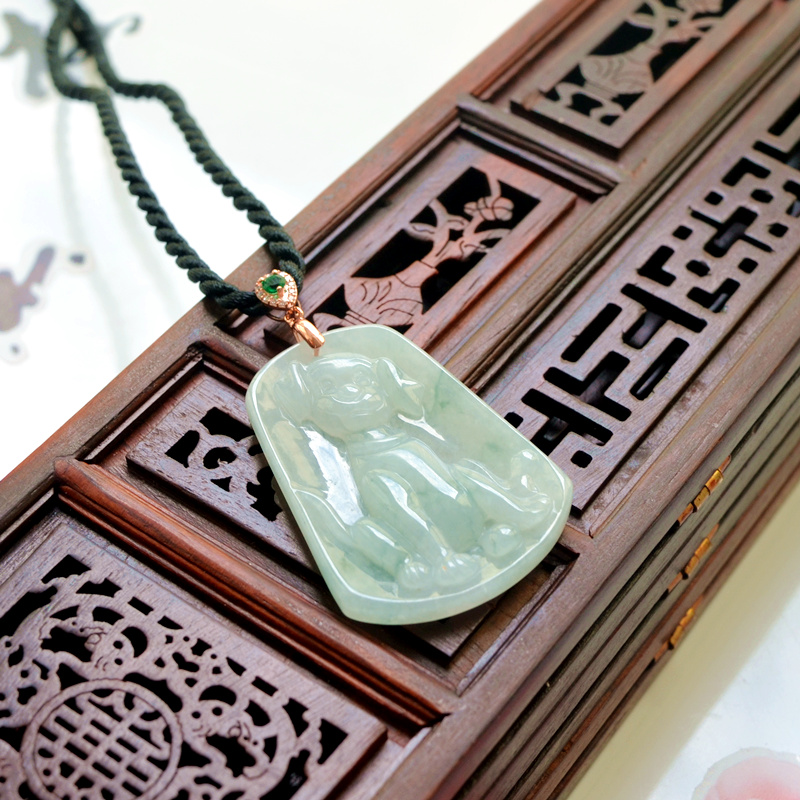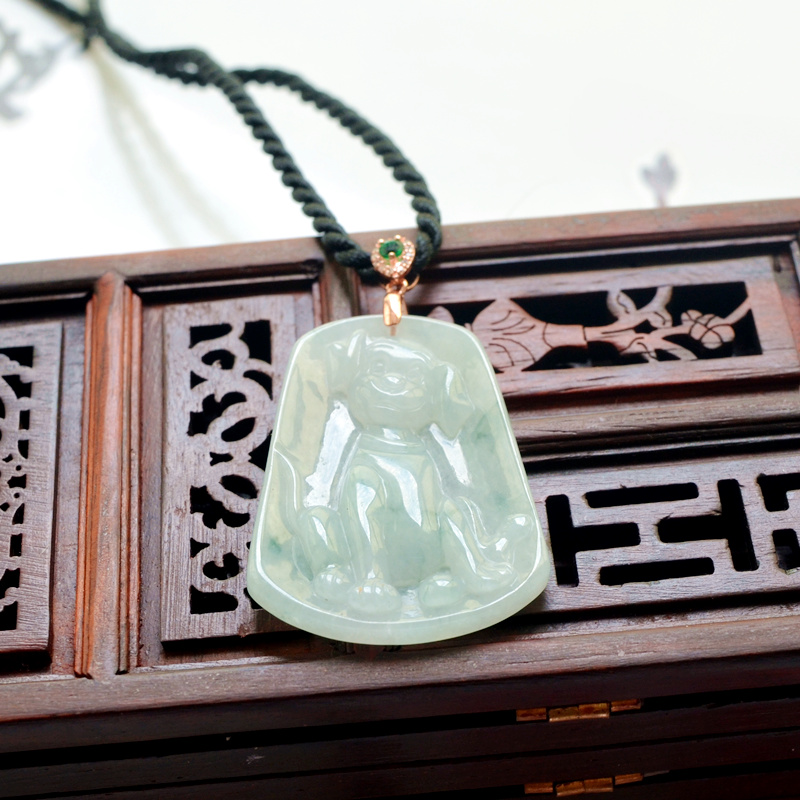 精雕飘花老坑A货翡翠可爱狗挂件冰糯种玉器生肖狗立体小玩件吊坠